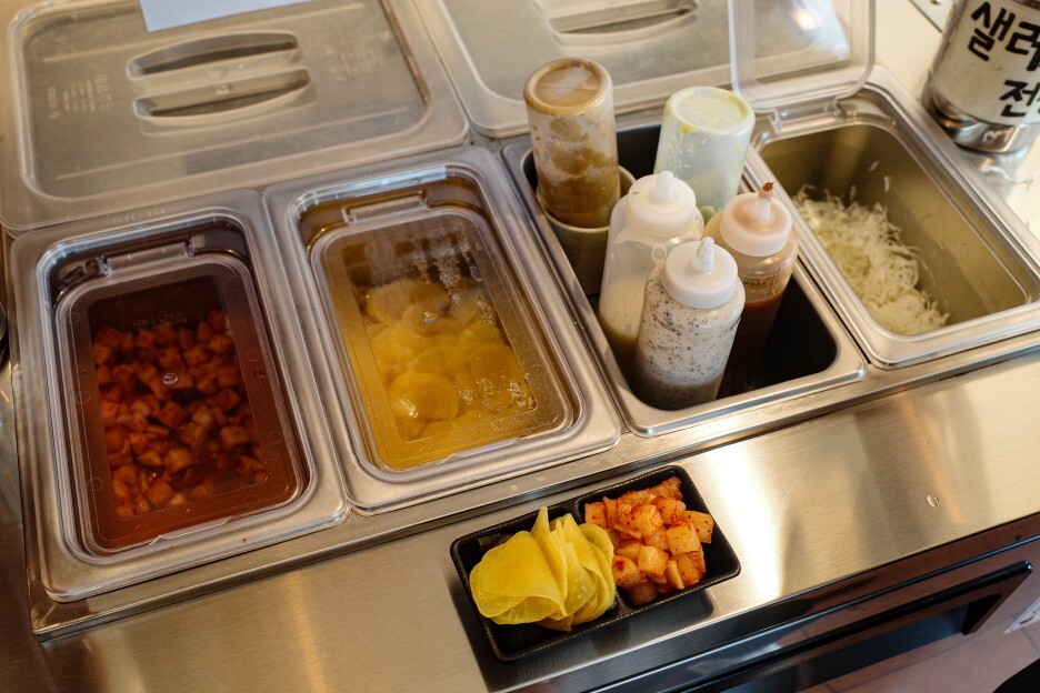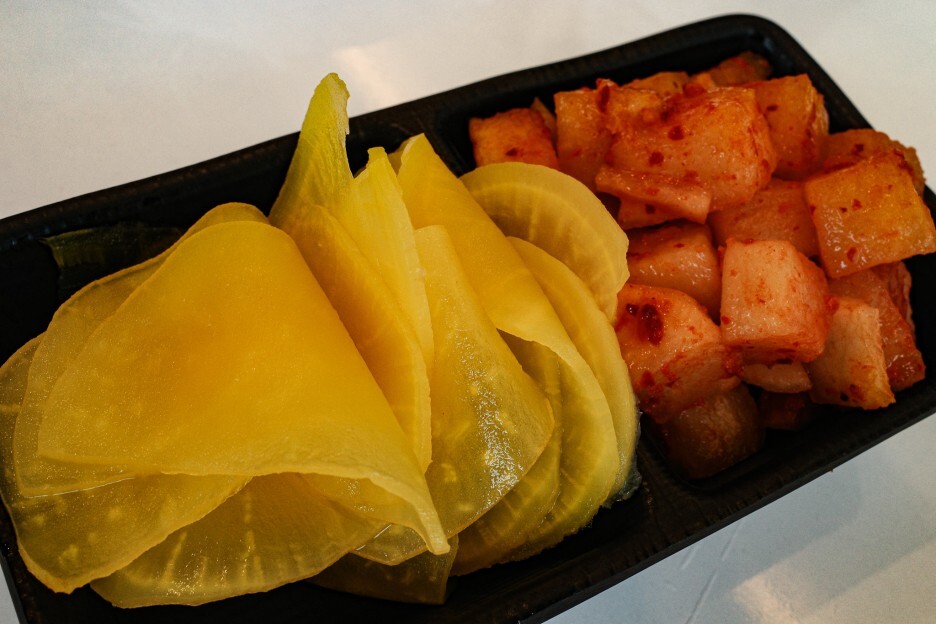 고작 단무지 몇 개와 고작 깍두기 몇 개를 담은 기본 세팅을,,ㅠㅠ