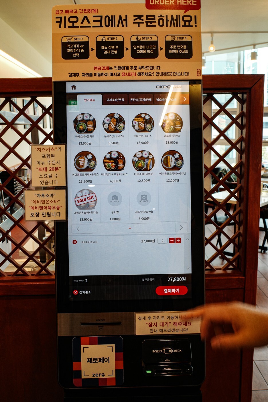 주문은 입구에 있는 메뉴판을 보거나 키오스크 검색을 통해 키오스크로 주문을 하면 됨