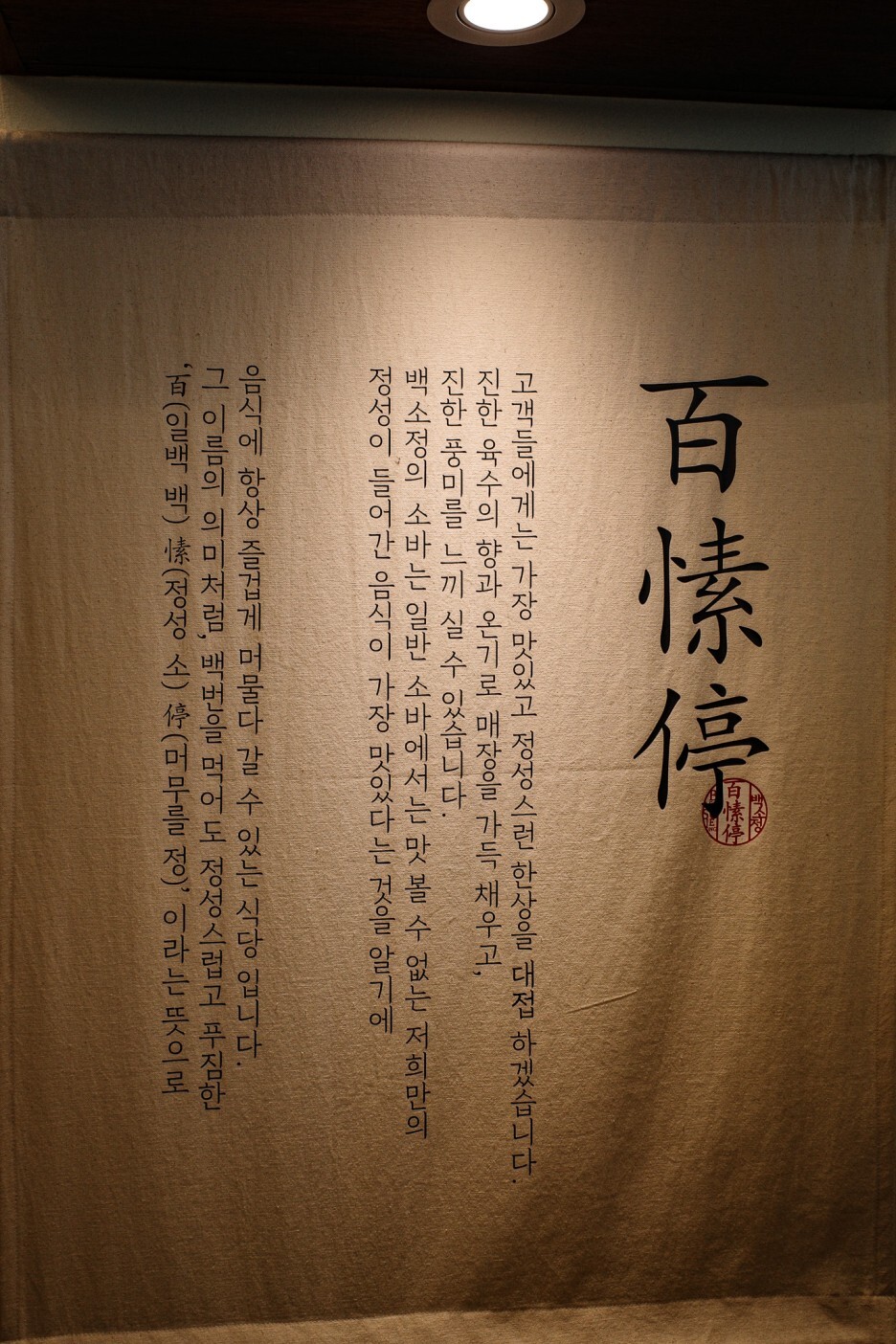 한쪽 벽에 백소정의 뜻을 알 수 있는 설명이 붙어있다.