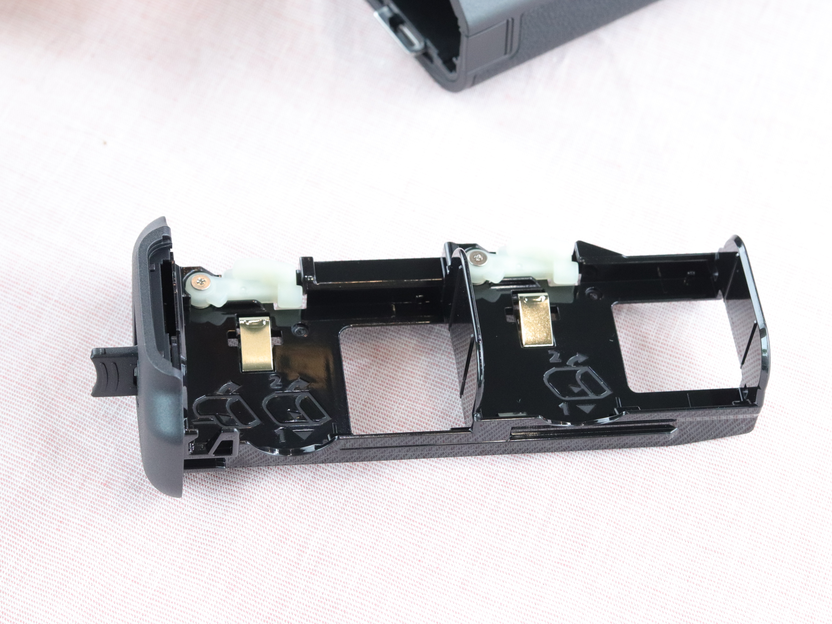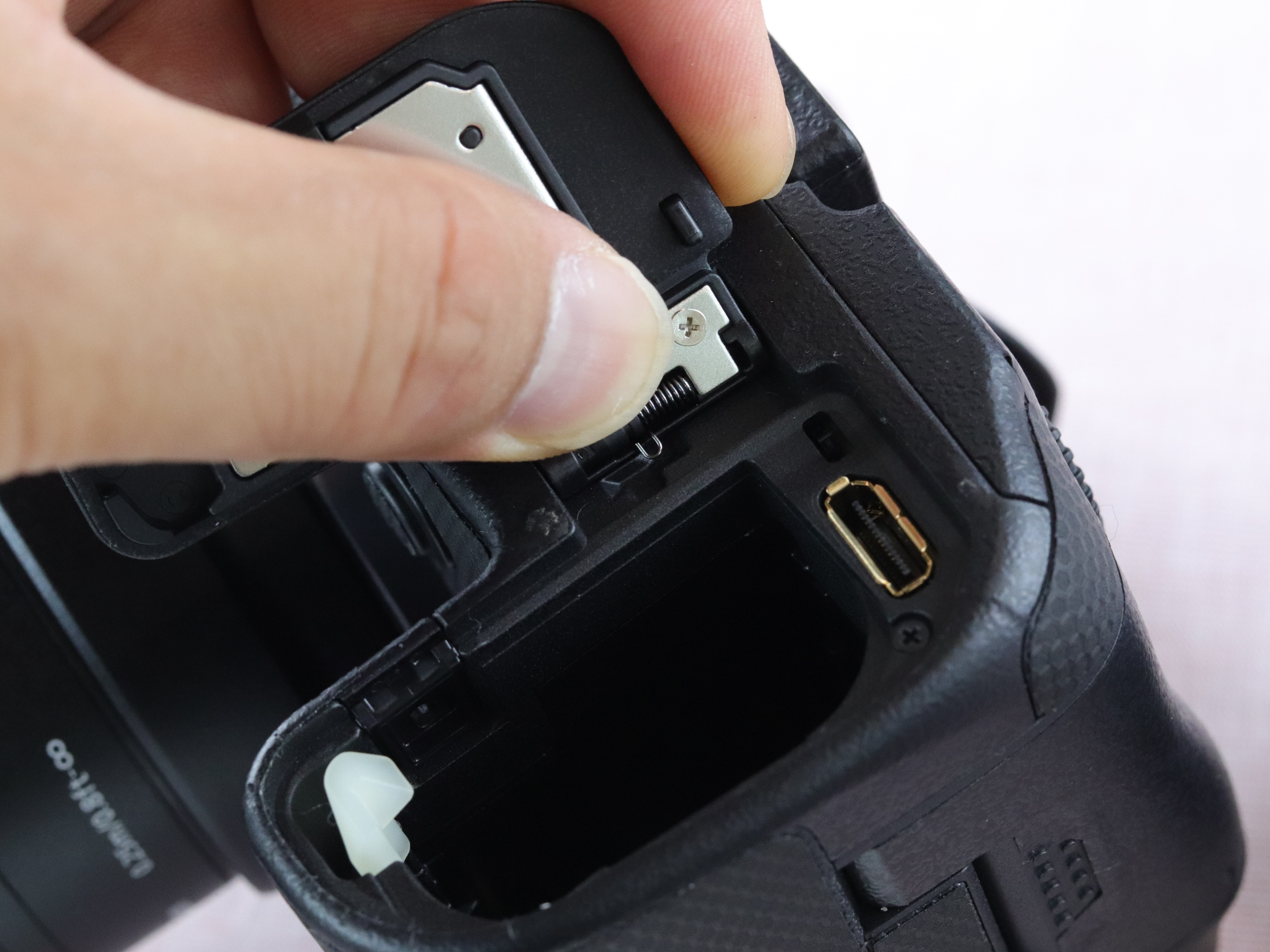 배터리 그립 측면의 배터리 케이스를 오픈해 준다.