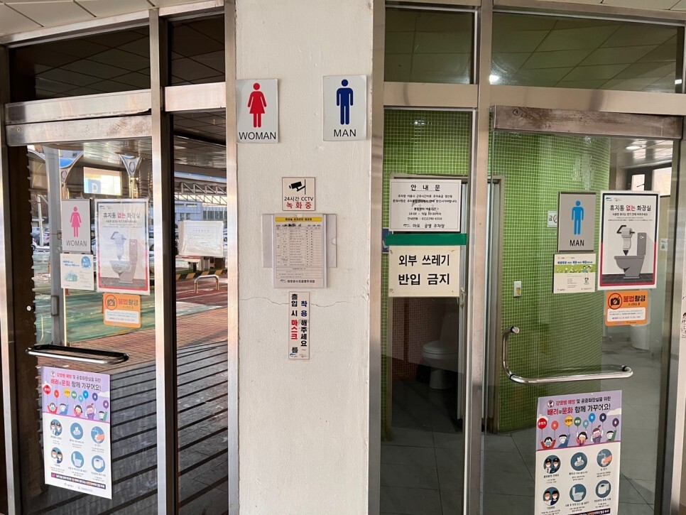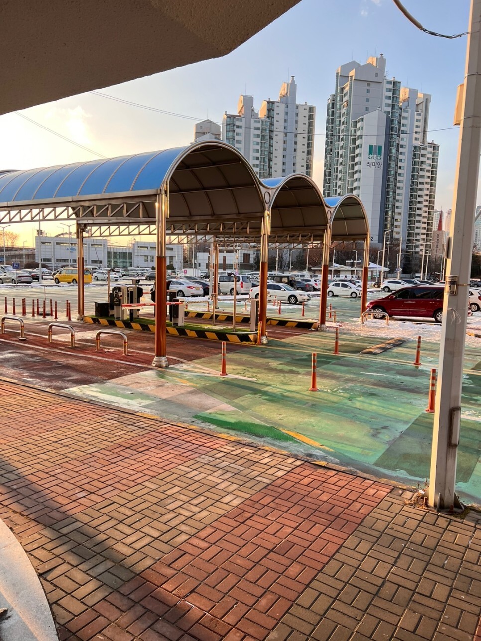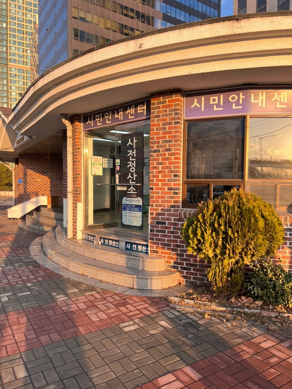 주차장 입구에 위치한 사전 정산소 및 화장실 및 시민안내센터