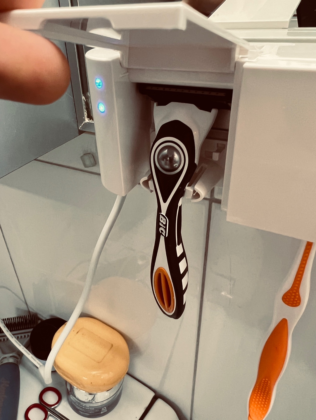 칫솔과 마찬가지로 면도기 사이즈도 제품별로 제 각각이라 제가 사용하는 모델이 알맞게 거치가 되는지가 문제였습니다.