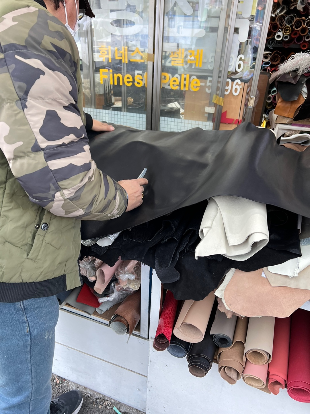 이곳은 가죽을 평 단위로 잘라서 구매가 가능하기에