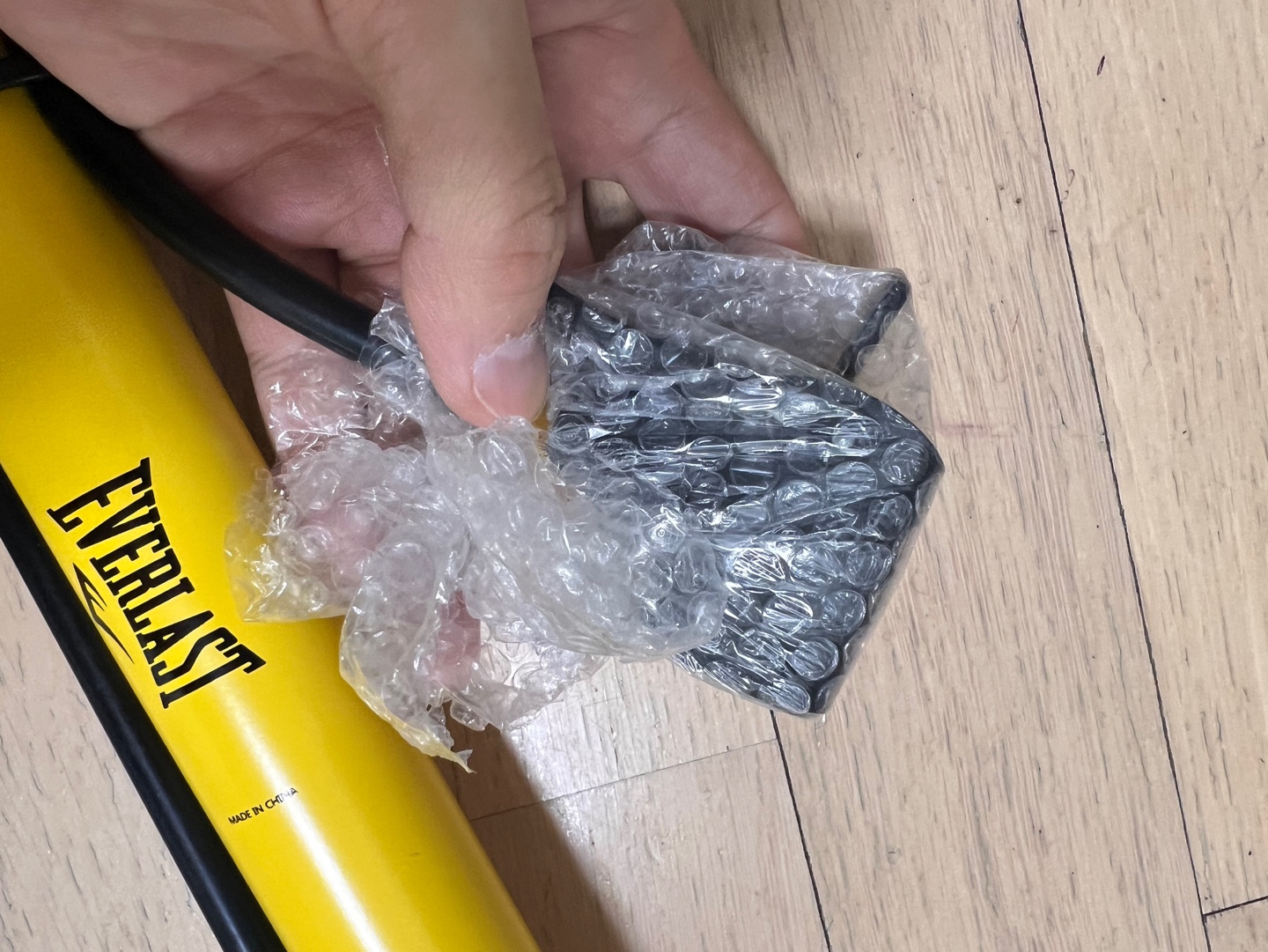 공기주입기의 헤드 부분은 안전을 위한 에어캡 포장이 되어 있었다.