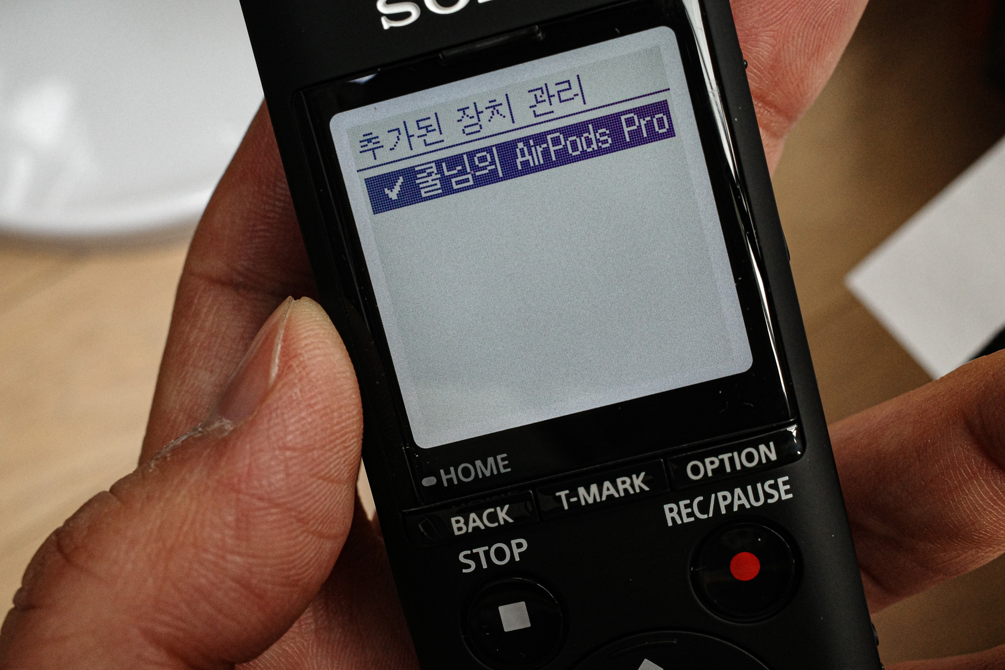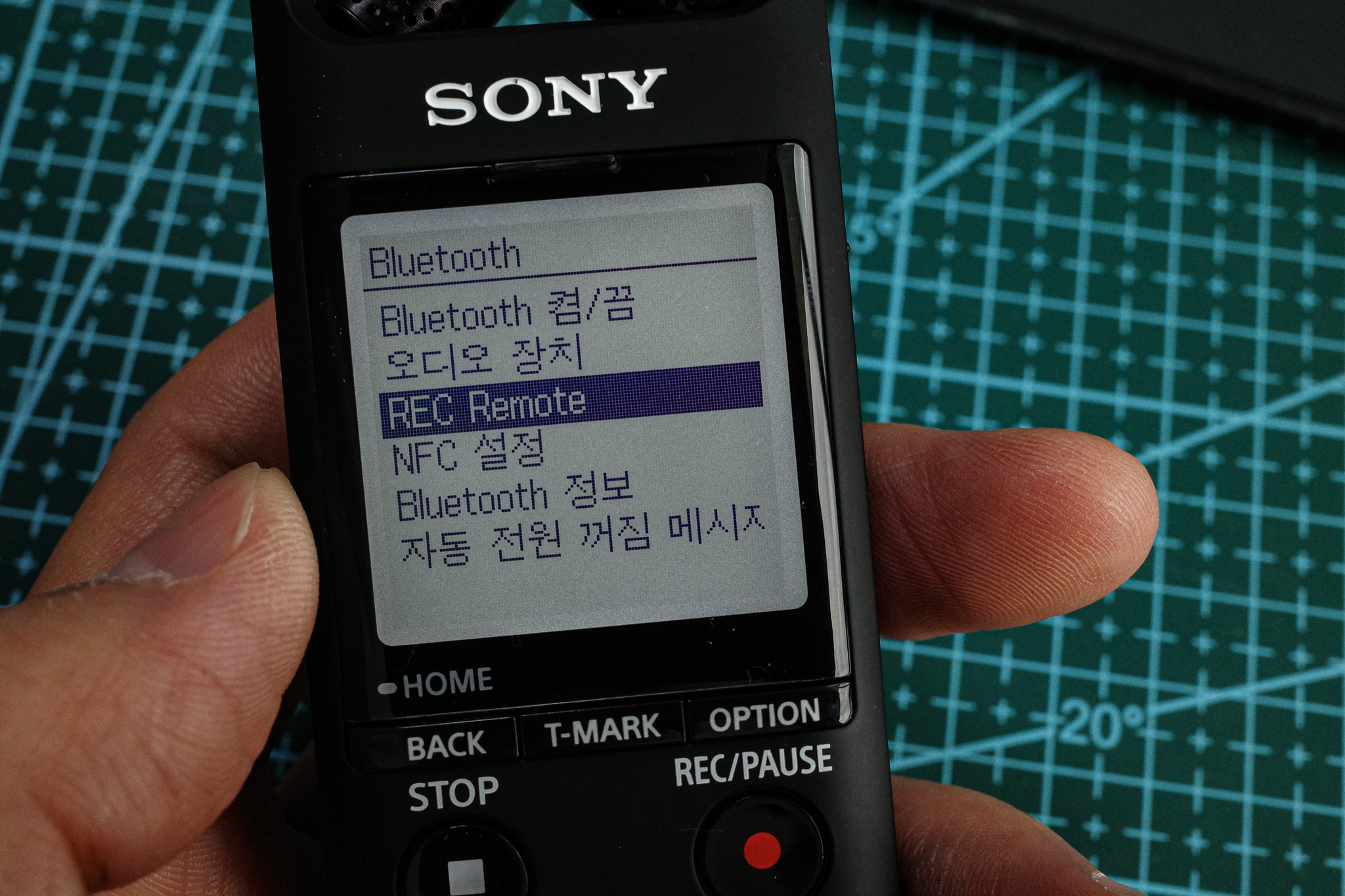 이때 소니 녹음기에서 블루투스 설정 -> REC REMOTE에서 연결을 해줘야 한다.