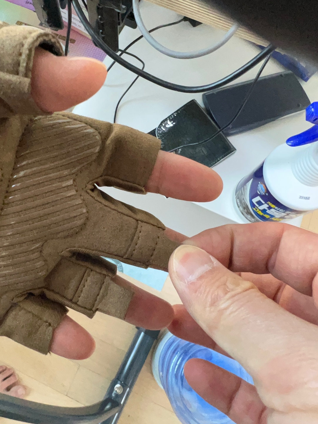 운동 후 장갑이 땀에 젖어서 잘 안 빠질 때 사용하기 좋다.