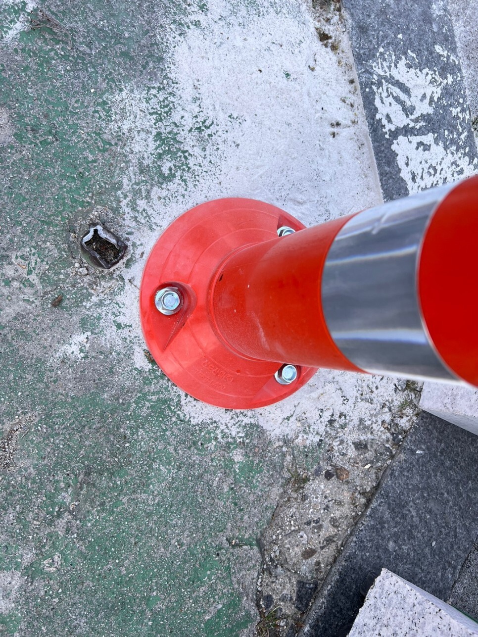 길이는 450mm 보도에 통행자가 좀 있어서 너무 높은 것으로 하면 이동 시 걸려서 넘어질 소지가 있어서 일부러 낮은 봉으로 설치를 ㅋ