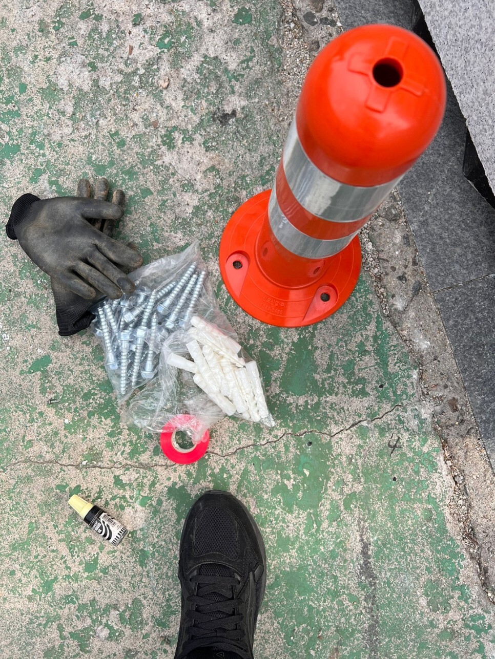 웬만하면 몸으로 때우는 스타일이라 주차 표지판 및 시선유도봉을 직접 설치하고 왔습니다.
