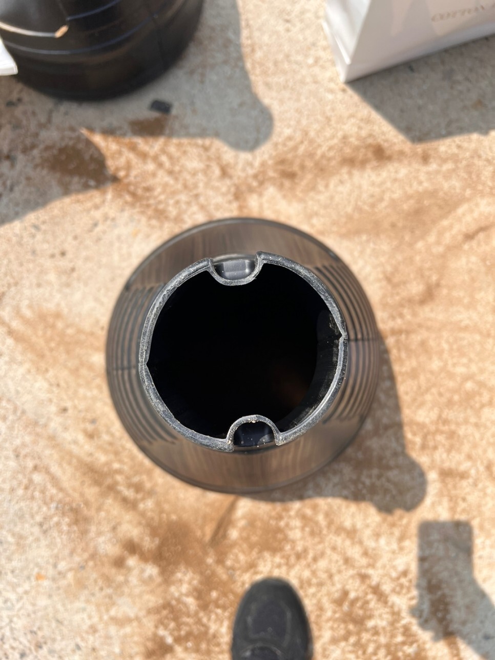 이 작은 구멍으로 모래를 냅다 퍼부으면 됩니다.