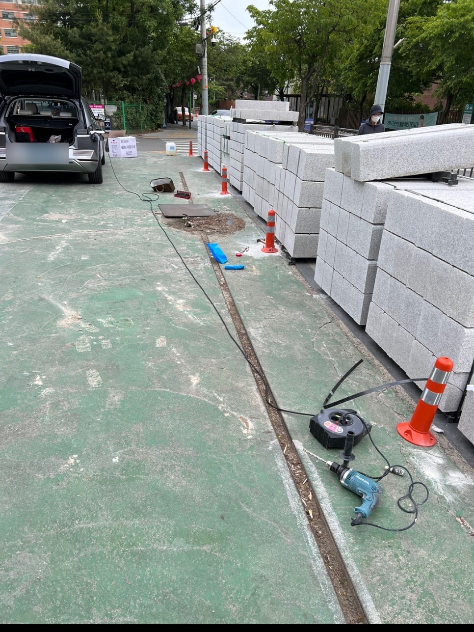 어떻게 알았냐면 주차장 앞에 보도블록 공사를 하고 있었는데