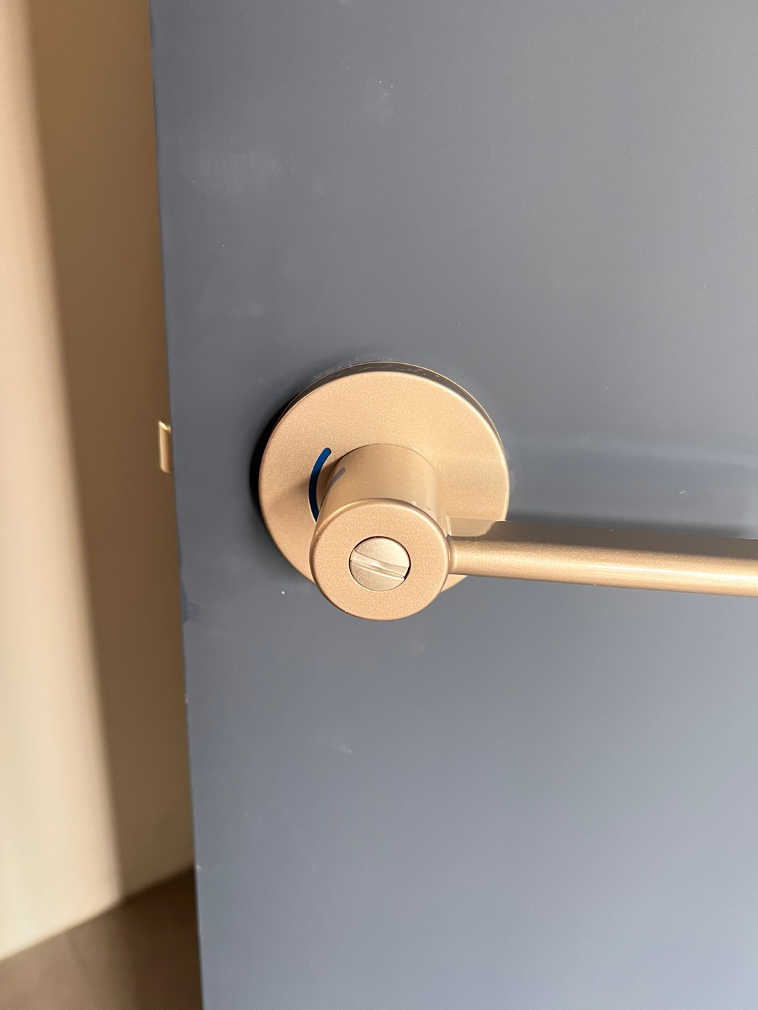 문 안쪽에는 잠글 수 있는 레바가 있다.