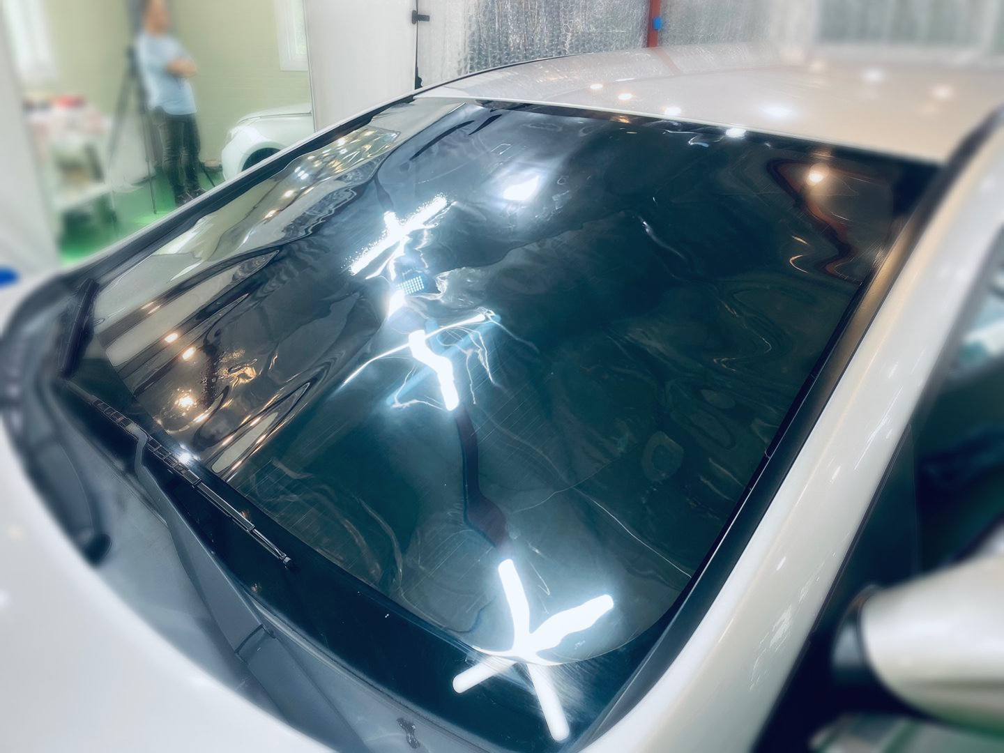 필름 성형을 위해 차량의 앞유리 올린다,.