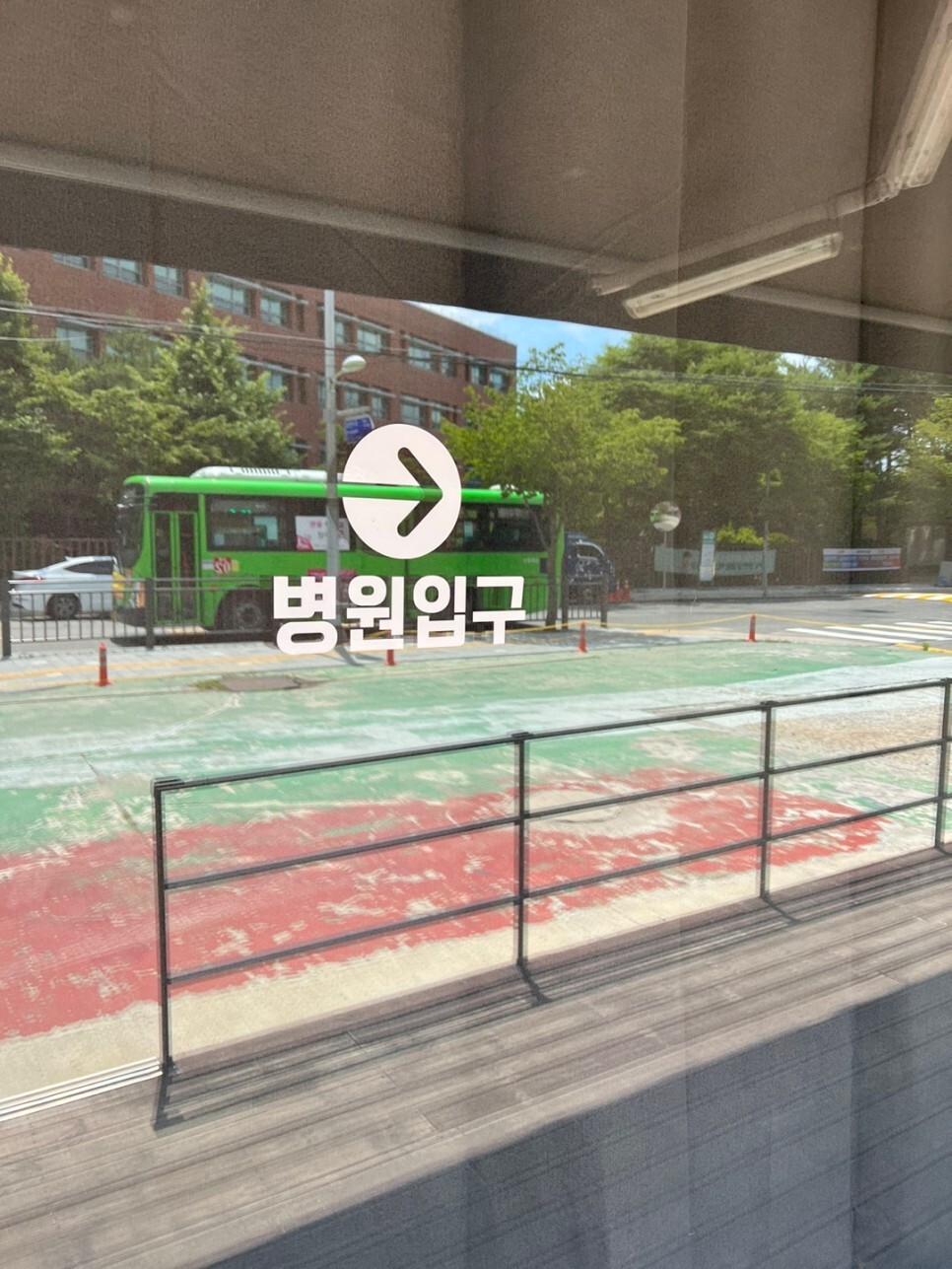 병원 입구를 측면에 만들었더니 고객분들이 입구를 오인하여 제작한 입구 안내문