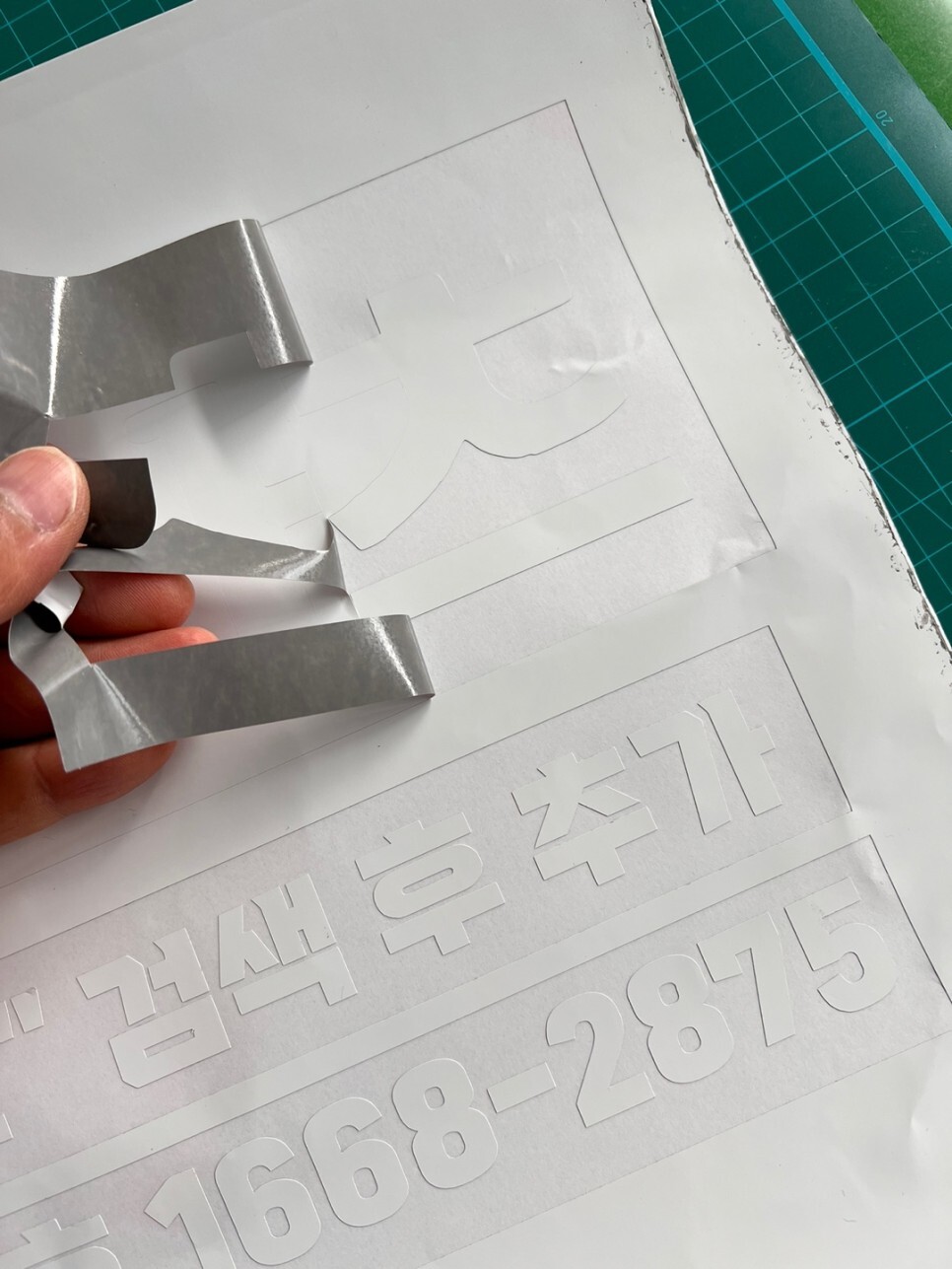 급하게 떼어내면 배경지에 글자가 딸려서 뜯어지기 때문에 조심조심 잘 잡아가면서 떼어준다.