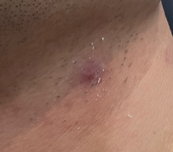 주사 맞기 전에 병변에 약 바른 자국이 있어서