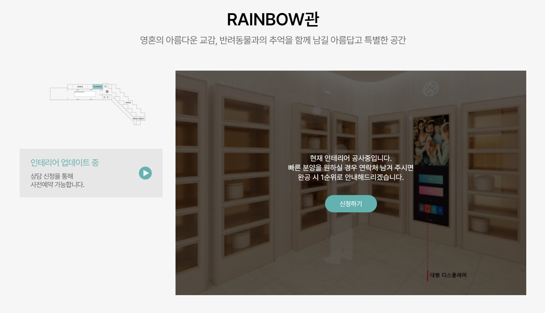 반려동물과의 추억을 남길 수 있는 레인보우관이 따로 마련되어 있습니다.