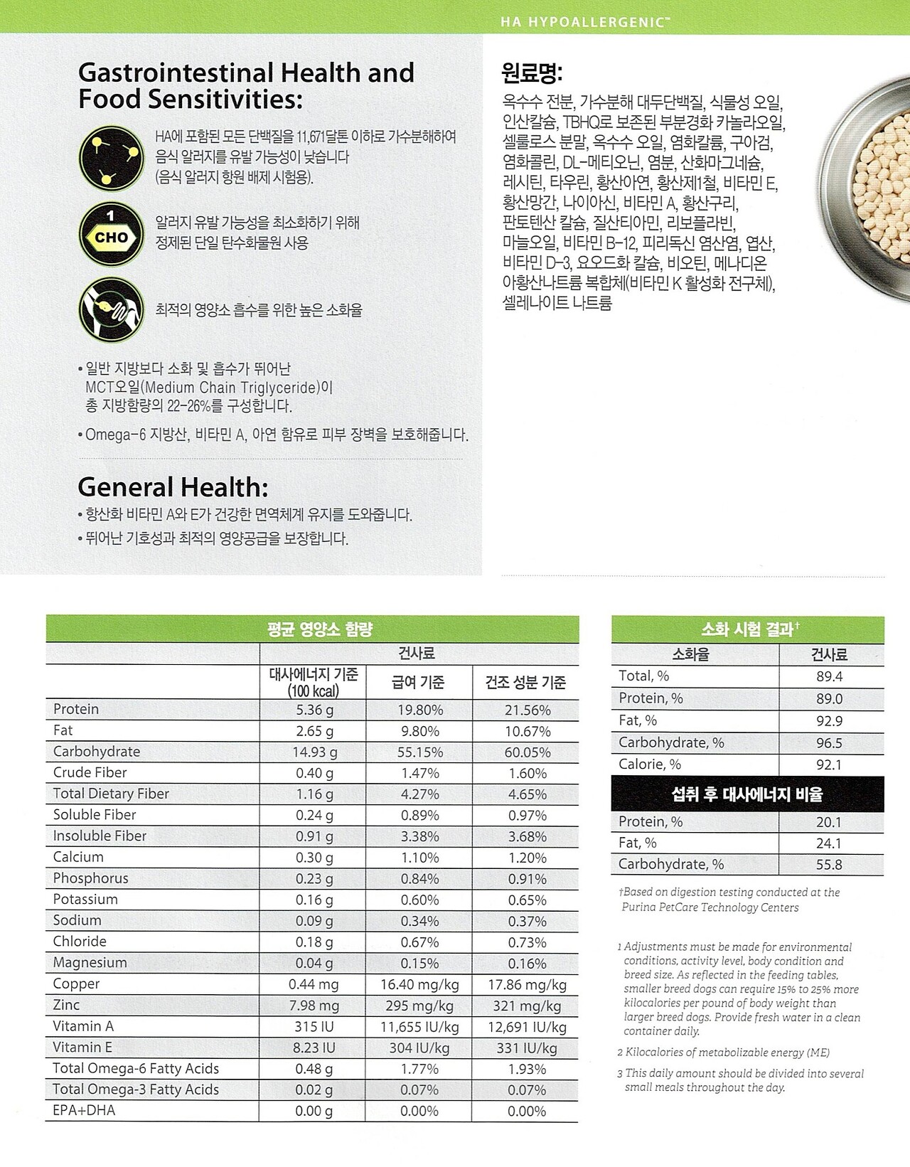 퓨리나에서 출시된 강아지 처방식 사료 프로플랜 HA입니다.