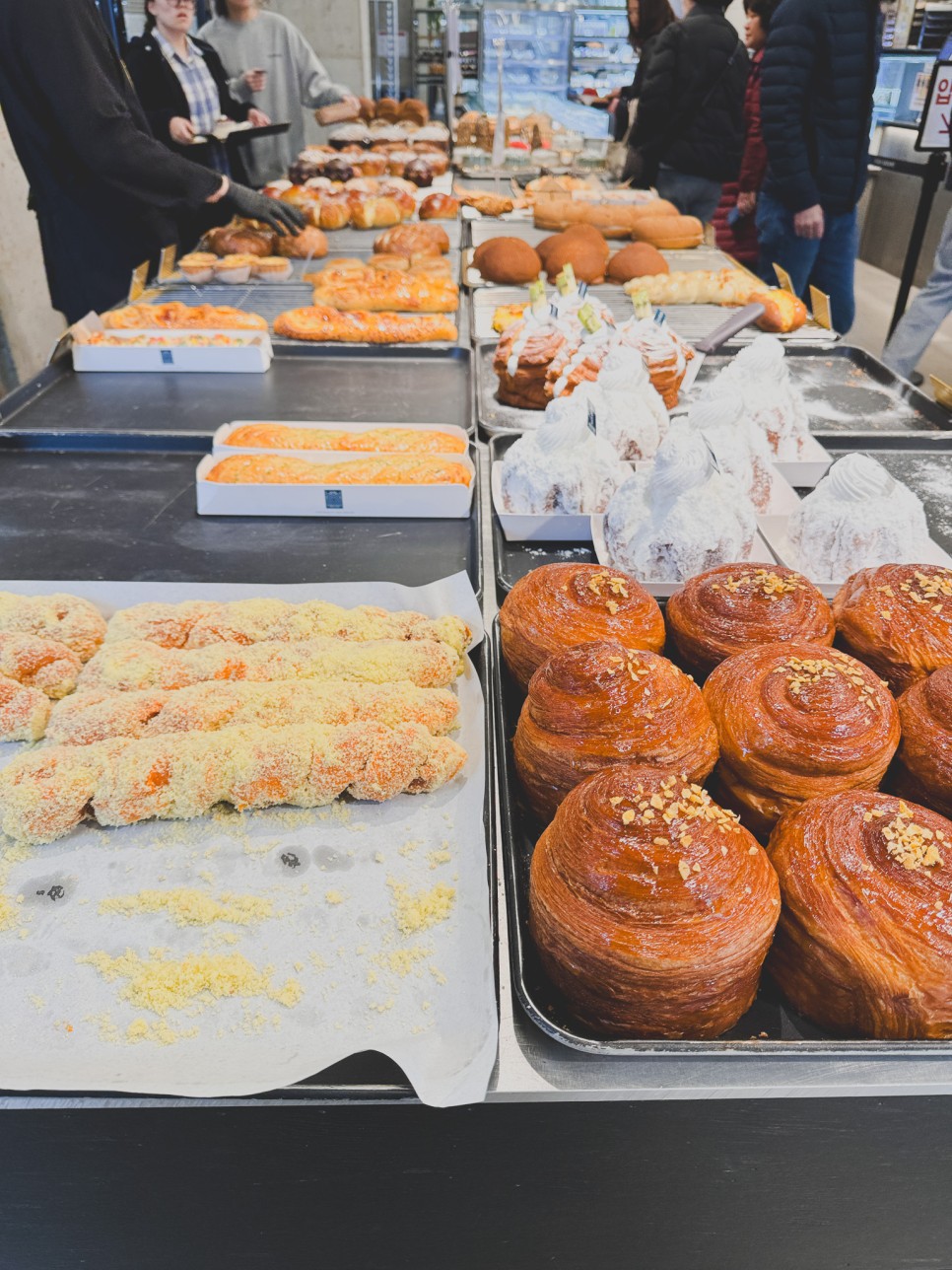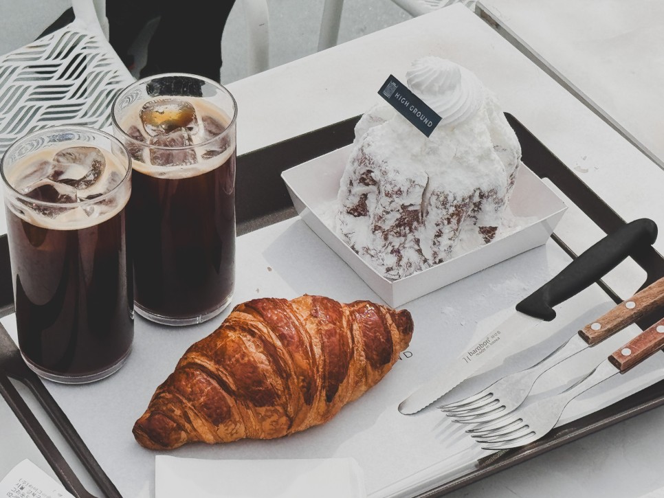 나는 크로아상을 그는 크림으로 하얗게 뒤덮인 무언가를 선택했다.