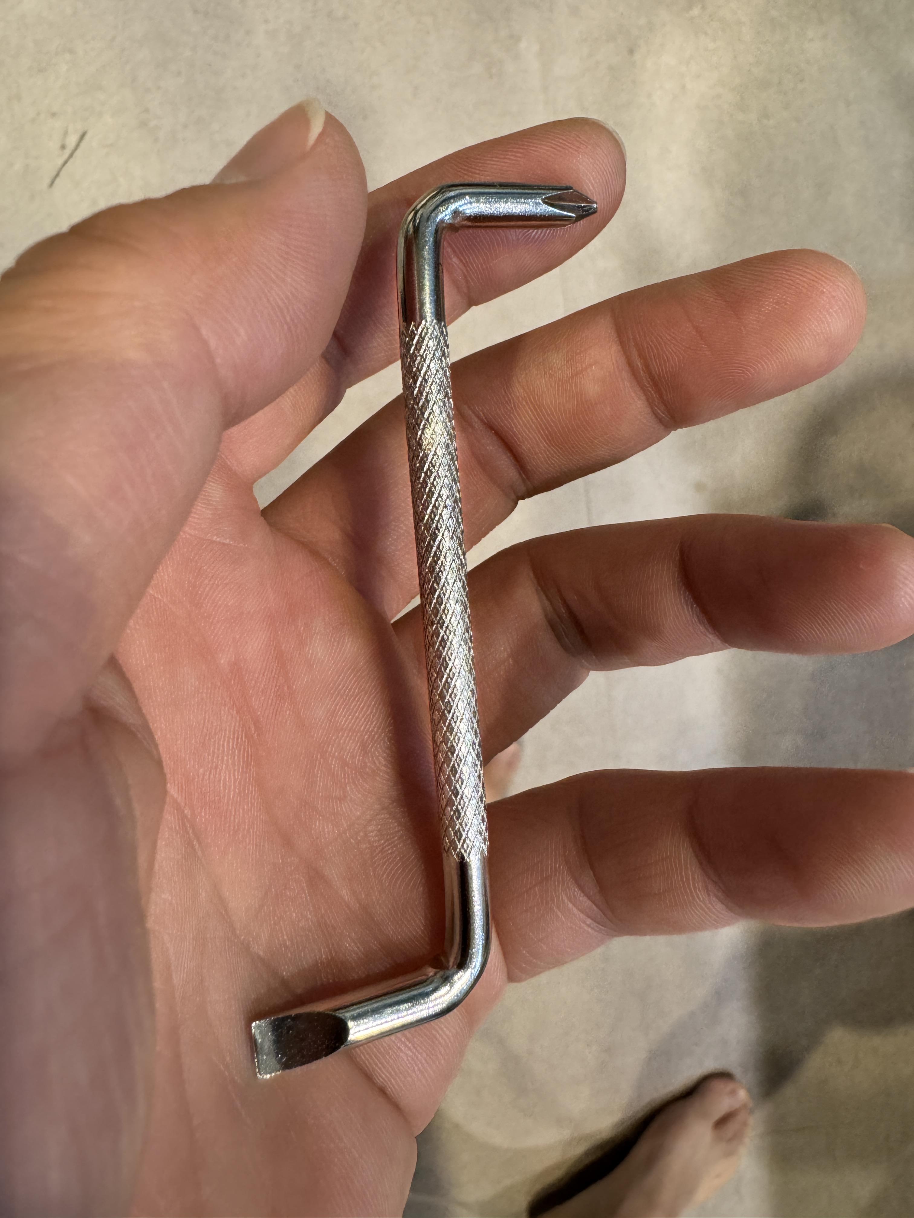 일반적인 스크루드라이버와는 달리 드라이버의 팁(날)부분이 손잡이와 일정 각도로 꺾여있는 공구다. 이런 디자인 덕분에 좁거나 손이 닿기 어려운 공간에서도 나사를 조이거나 풀 수 있도록 해준다. 당연히 일반 드라이버로 작업할 수 없는 아주 협소한 곳에 많이 사용된다.
