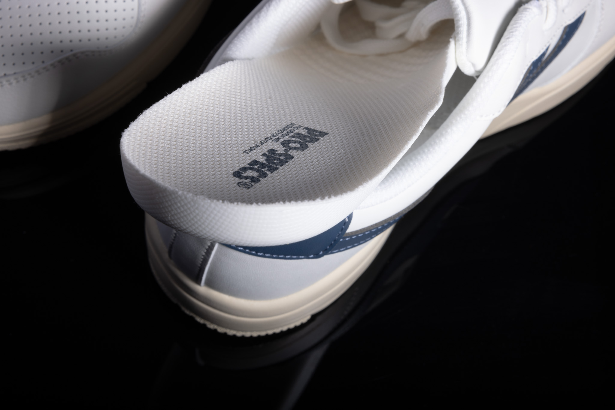 또한 디자인의 경우 테니스화에서 영감을 받았는데, 심플하면서도 스포티한 디자인에 프로스펙스의 대표적인 빅 로고가 아이코닉한 포인트를 더해 깔끔하면서도 트렌디한 느낌을 주고 있다. 코디가 쉬운 화이트에 블루 포인트의 로고로 깔끔한 디자인을 가지고 있어 다양한 스타일과 매치가 쉽다는 것이 장점