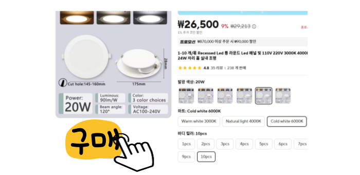 탕비실 설치가 목적이므로 방습형 제품을 선택 (알리로 구매하면 훨씬 저렴하다)