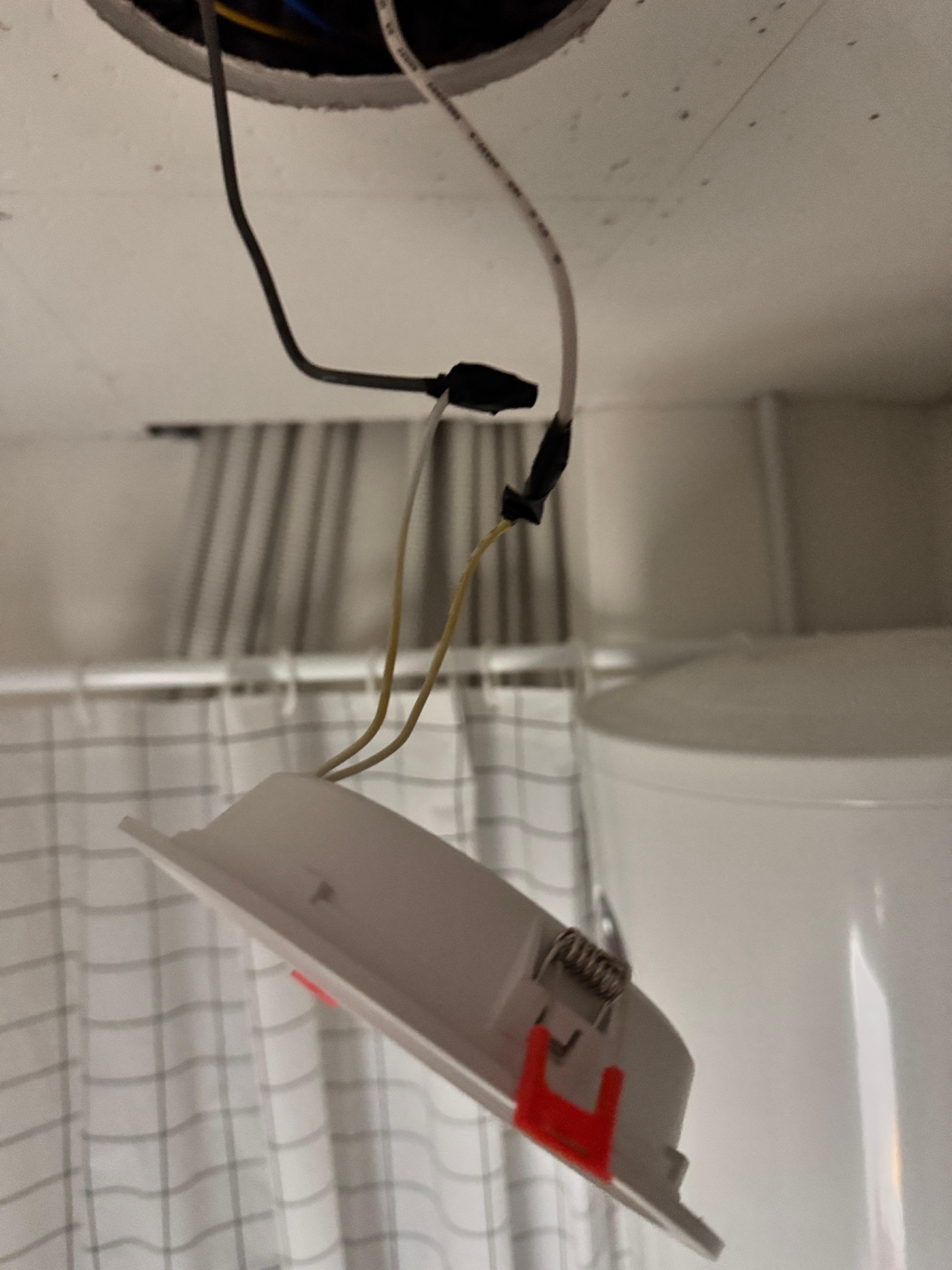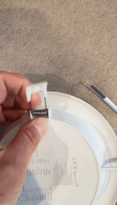 이런 형태의 LED는 대부분 스프링 클립 방식으로 고정이 되어있다. 조명을 살짝 아래로 당기면 클립 접히면서 공간이 생기는데