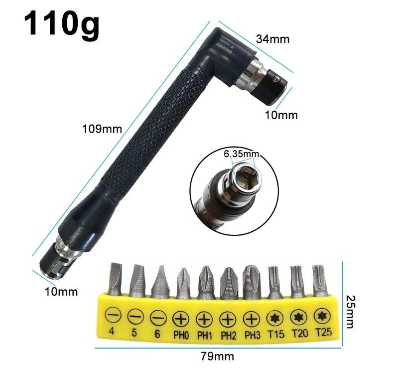 L-shaped 1/4 Hexagonal Screwdriver Bit 90 Degree Double Head Handle Black 6.35 Wrench 10pc Yellow Tape Screwdriver Bit Tool Set