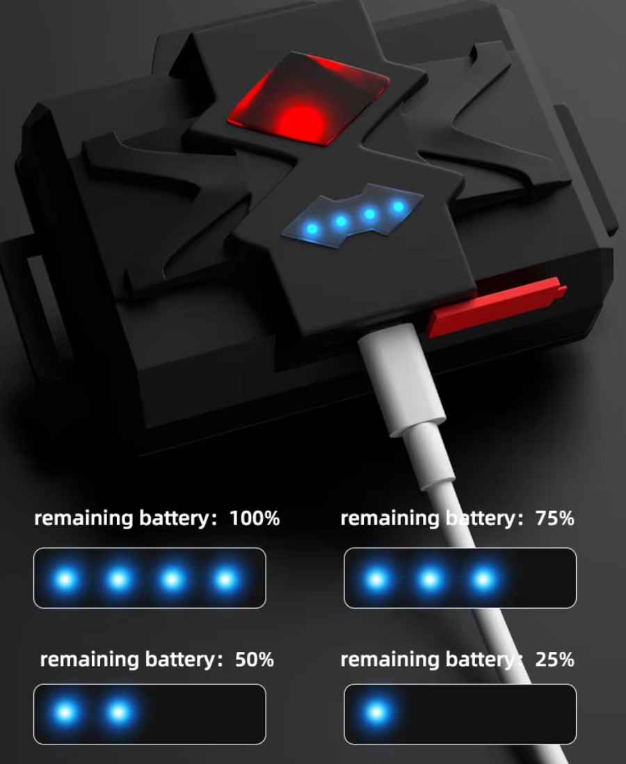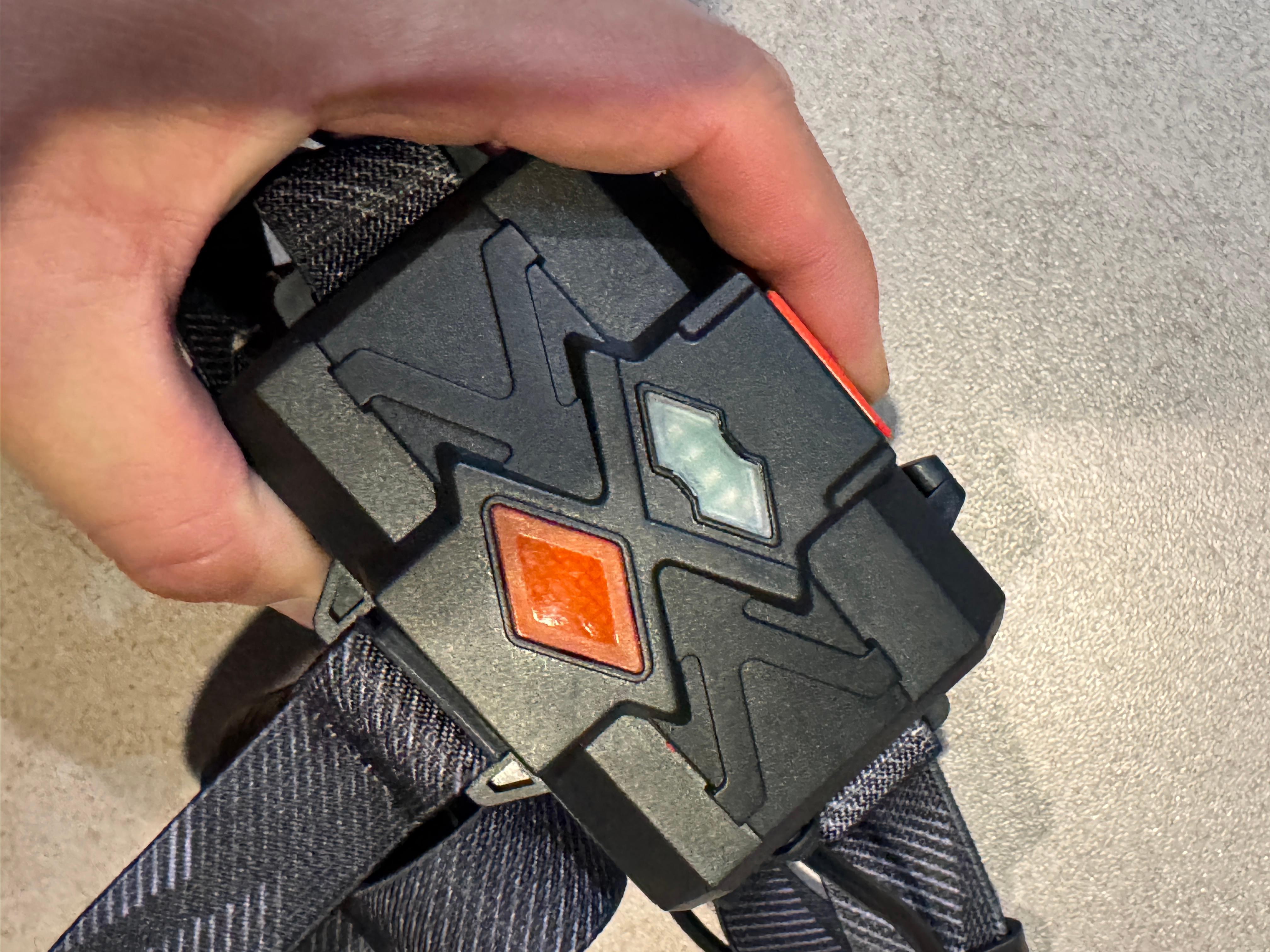 헤드라이트의 전원 버튼은 앞쪽에 있습니다. 버튼을 누르면 램프가 단계별로 점등이 됩니다. 상세 페이지 상에는 100% 50% 25% 광량의 순으로 그다음 플래시 그다음 전원 OFF 이렇게 나와 있는데 제가 사용해 보니 100% 50% 플래시 3가지 모드로 작동하는 것 같더라고요. (전 별로 중요하게 생각하는 부분이 아니라 좀 더 확인할 필요가 있습니다. SOS모드는 길게 3초 이상 누르라고 되어 있네요)