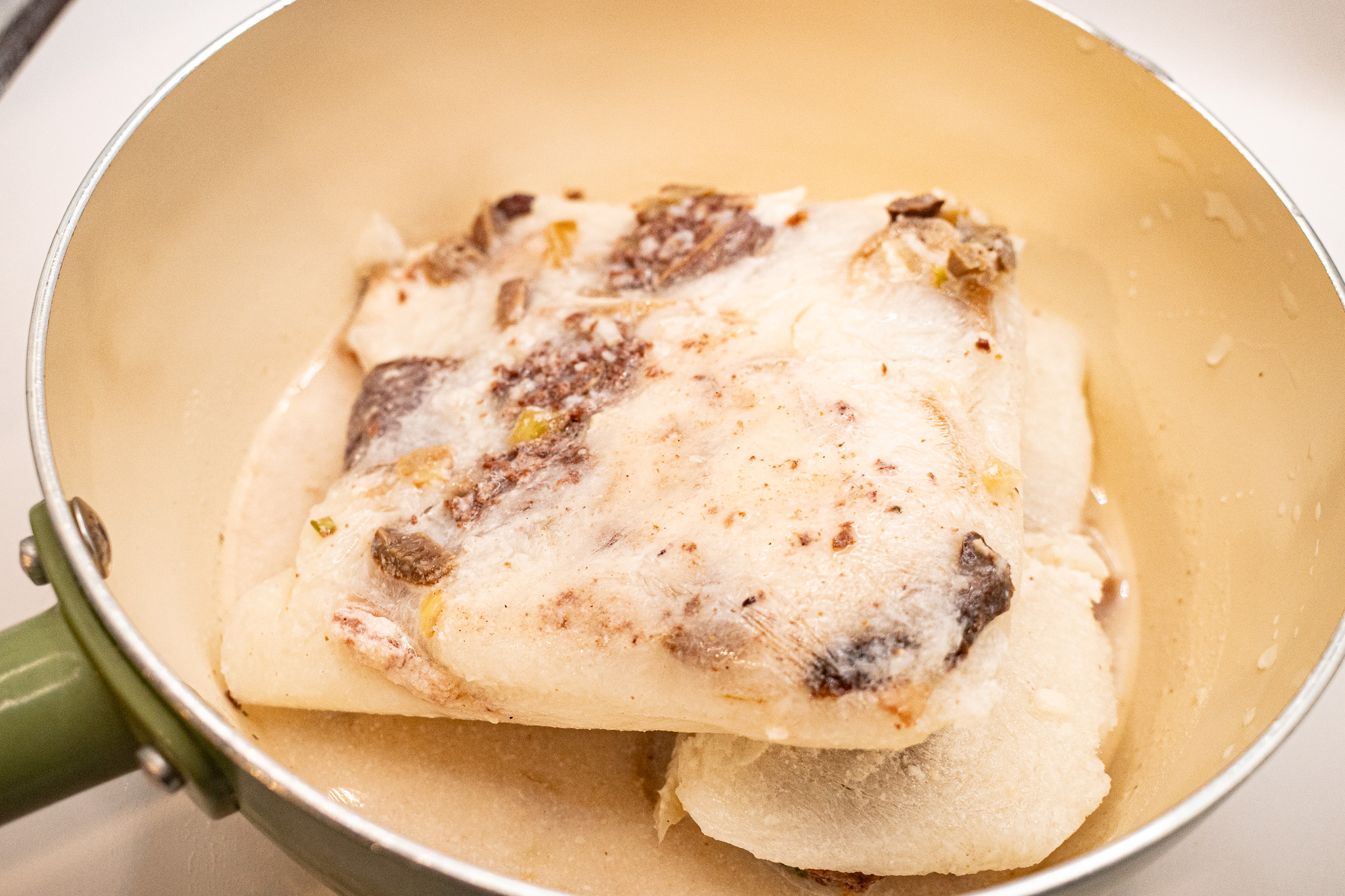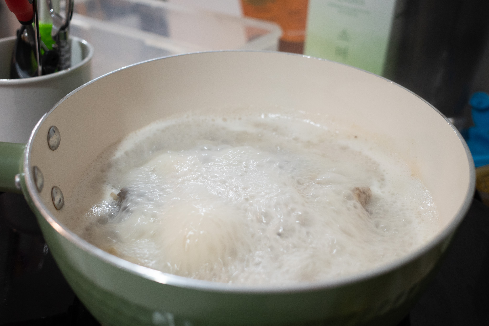 저는 내용물을 약간 해동시킨 후(쪼개질 정도로 해동이 되면 포장을 뜯지 않은 상태에서 조각을 냄) 냄비에 통째로 담아 끓입니다.