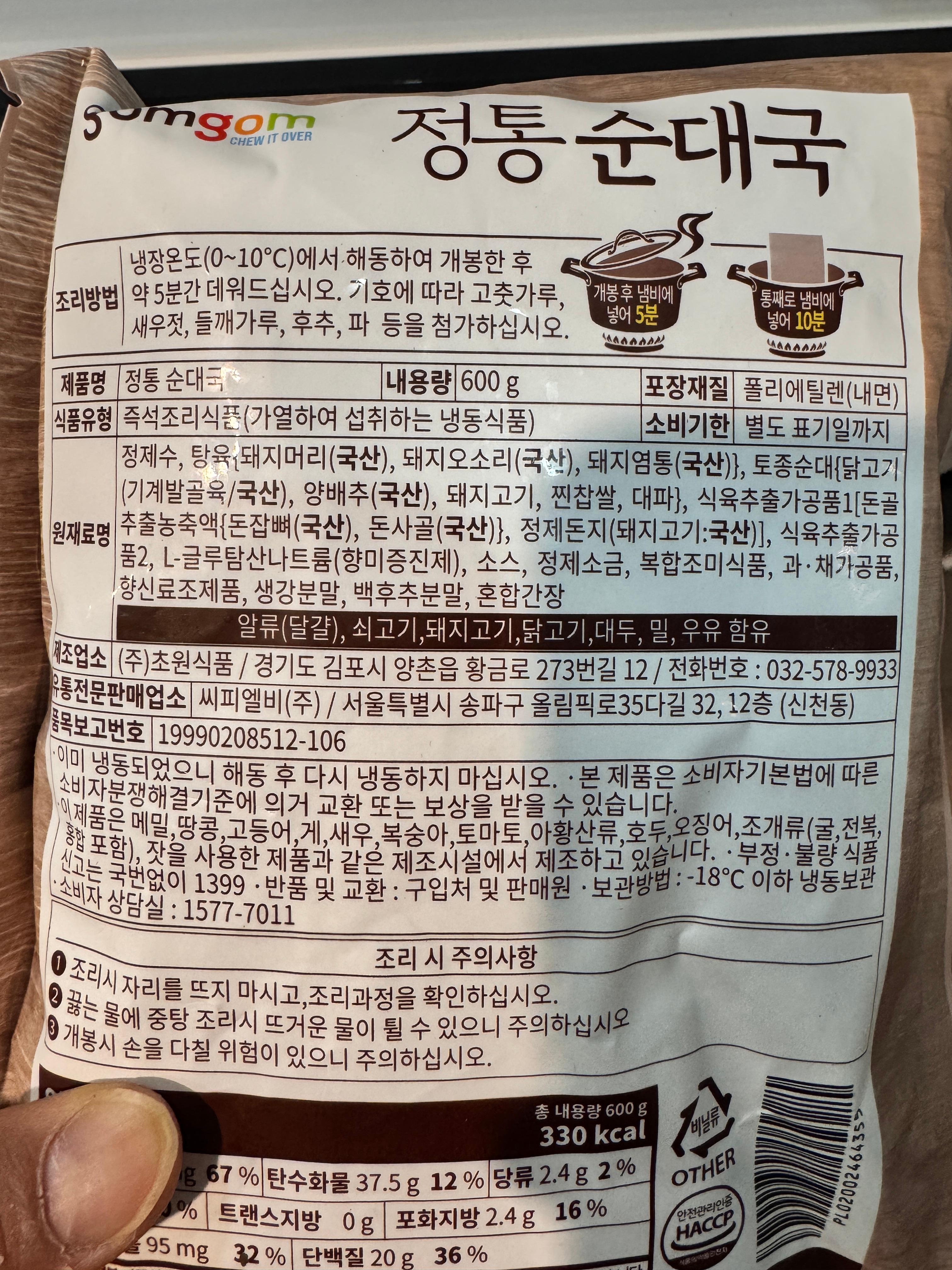 곰곰 순대국 성분 분석