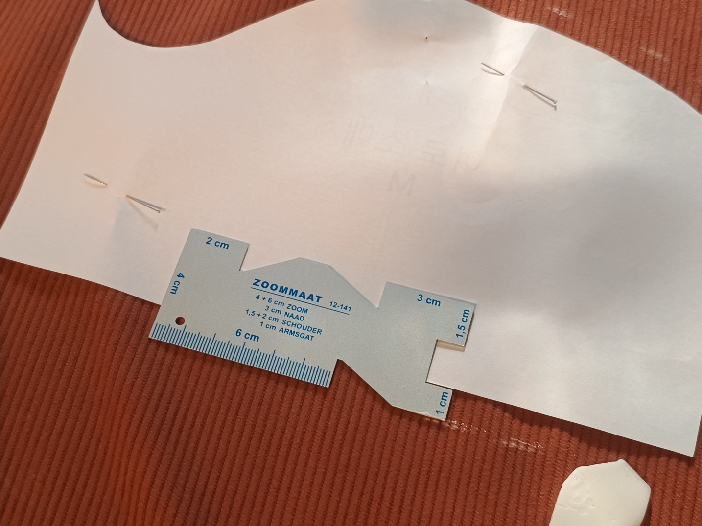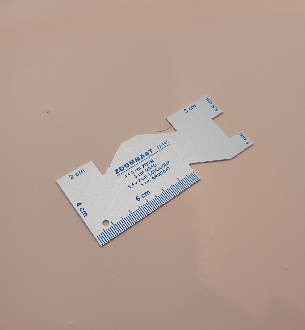 1cm, 2cm, 3cm, 4cm, 6cm 표시가 되어 있습니다. 시접뿐만 아니라 사이즈를 측정하기에도 좋게 구성되어 있습니다.