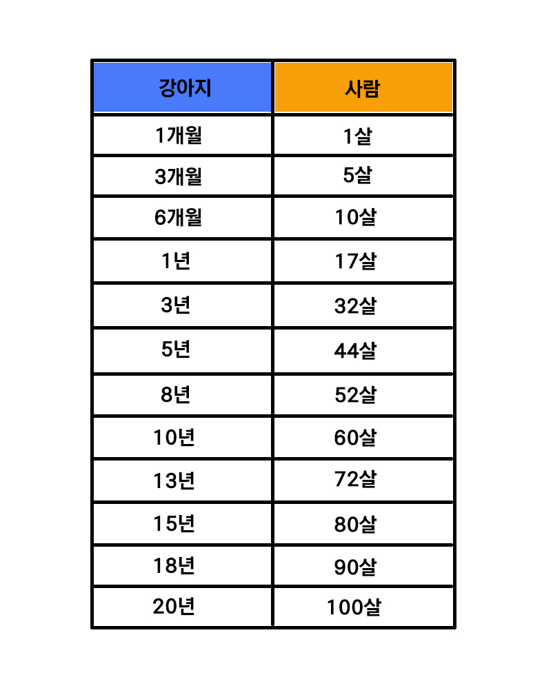 우리의 반려견 사람으로 치면 몇 살 일까?