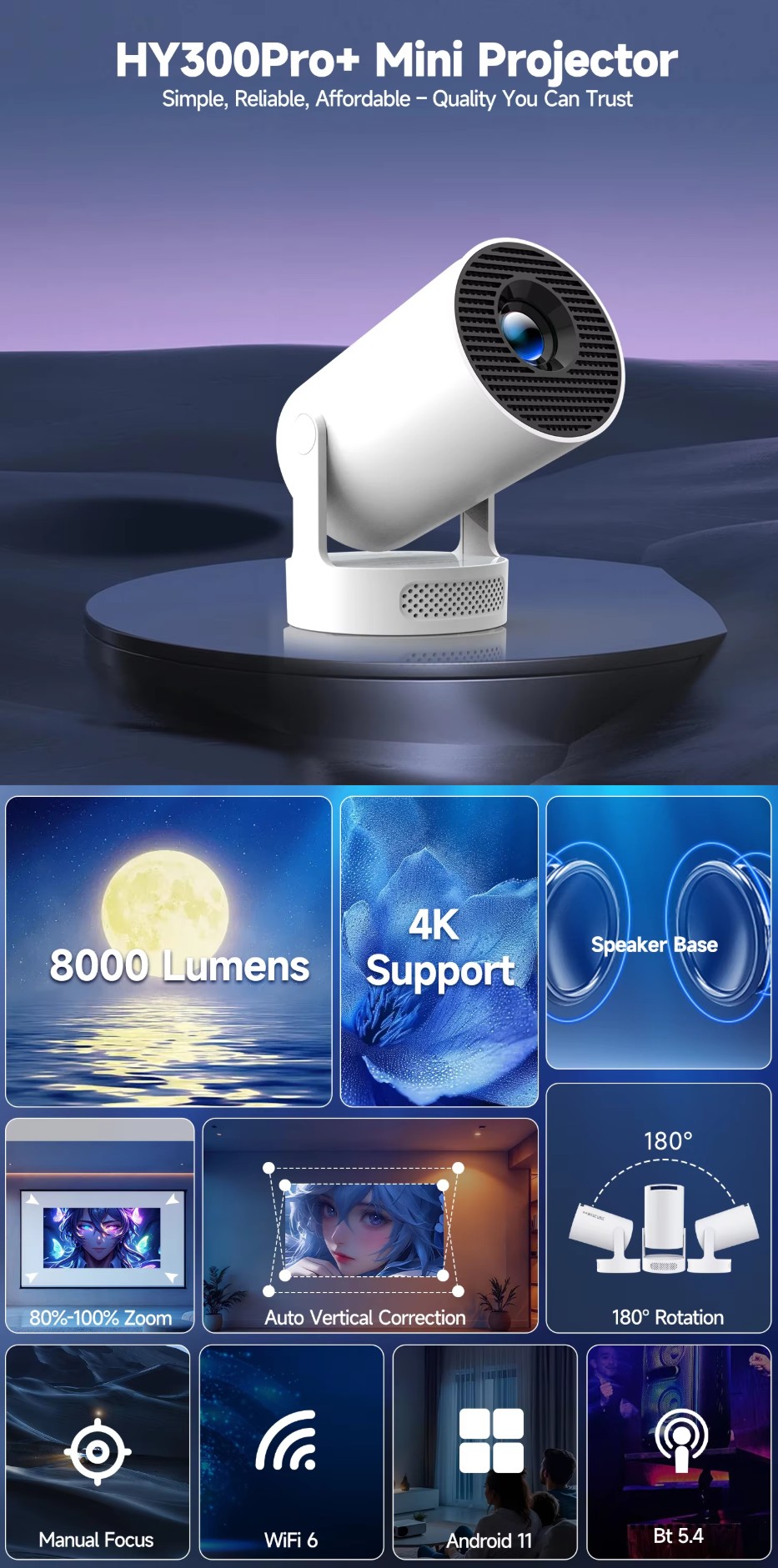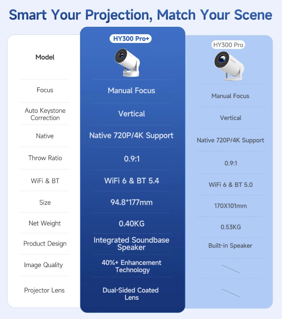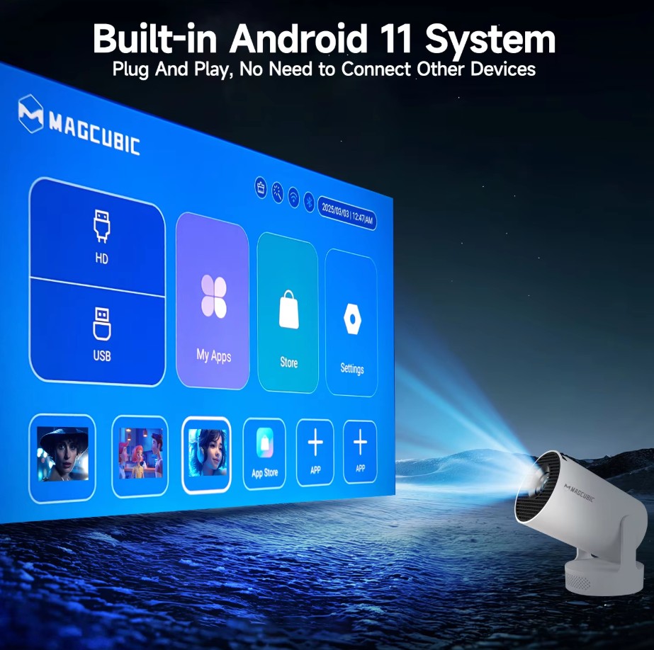 Magcubic 4K HY300 Pro + Projector Built in 5W Speaker 1280*720P Android 11 8000 Lumens Wifi6 BT5.4 Outdoor Portable Projector -