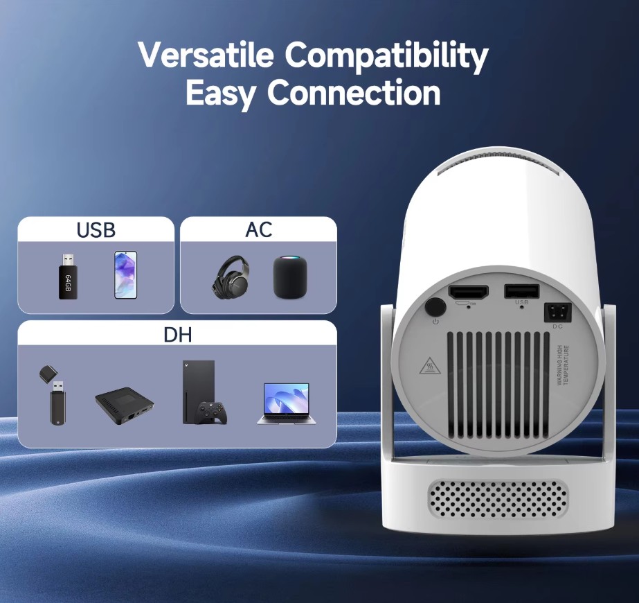이 미니 프로젝터는 WiFi 기능을 지원해 스마트폰, 태블릿, 노트북 등 다양한 기기와 간편하게 연결할 수 있습니다.
