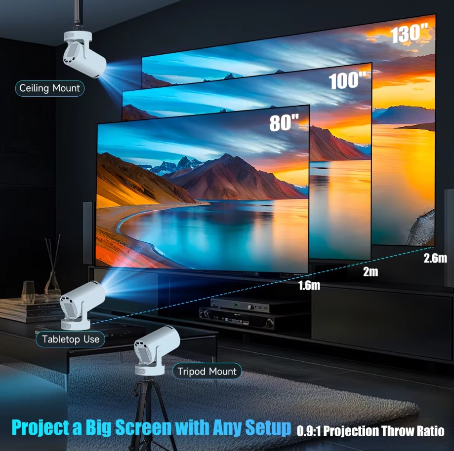 이 미니 빔프로젝터는 작지만 다양한 가능성을 품고 있습니다.