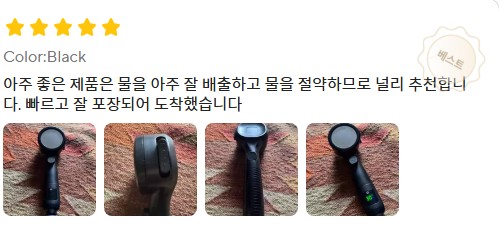 장점 수온 실시간 표시, 다양한 물줄기, 무전원 작동, 쉬운 설치 및 관리