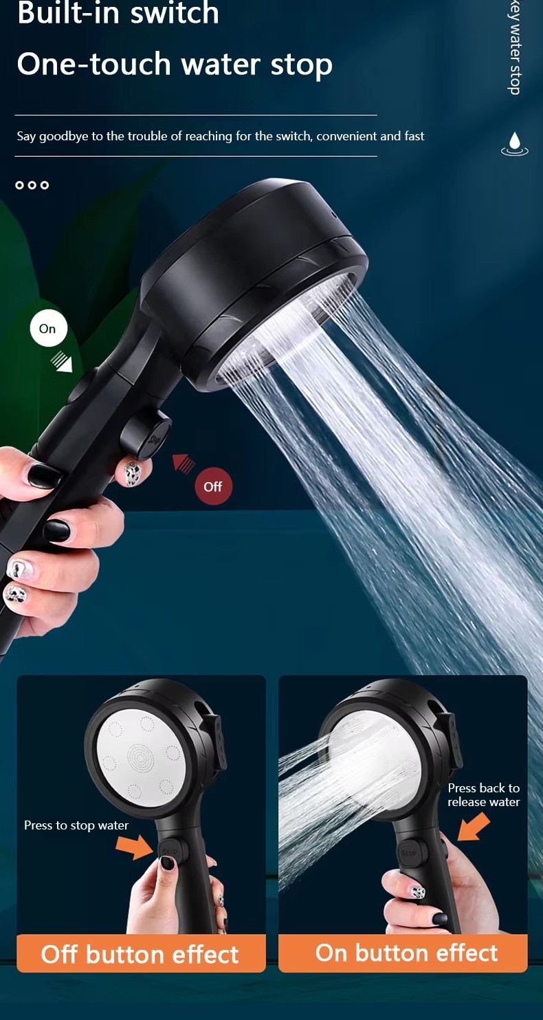 이 제품은 상단 버튼 하나로 3가지 물줄기 모드를 전환할 수 있습니다.