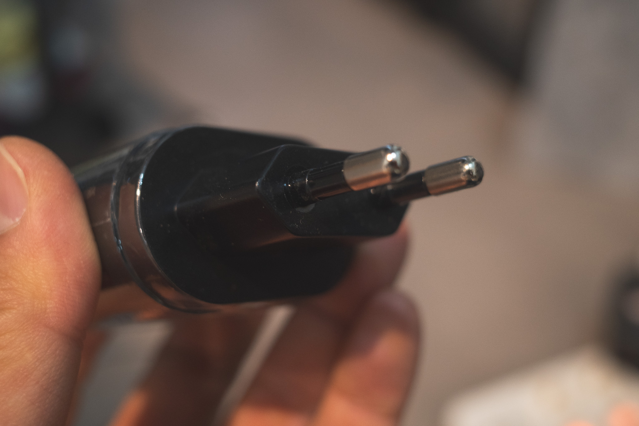 제가 최애 하는 파나소닉 면도기입니다. 일본 생산 제품인데 플러그가 1자라 변환 어댑터를 사용해야 하는데요. 사진에서 보는 바와 같이 아주 잘 작동합니다.