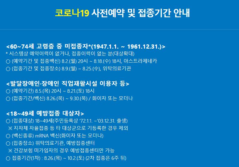 2021년 8월 9일 부터 시작한 18~49세 백신예약