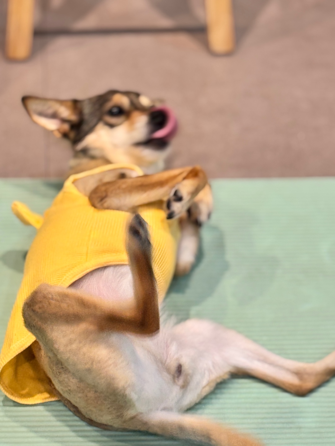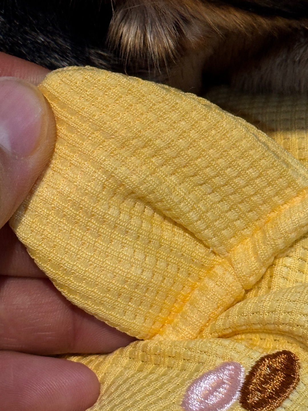 날씨가 점점 더워지고 있다. 우리 멍멍이는 옷이 많은데 (직접 만들어 입힘).. 요즘에 도통 작업할 시간이 없는 관계로(알리를 기웃 기러기 위한 핑계) 알리익스프레스 천 원 마트에서 3벌을 구입했다. 그중 첫 번째가 이 병아리 같은 옷이다.