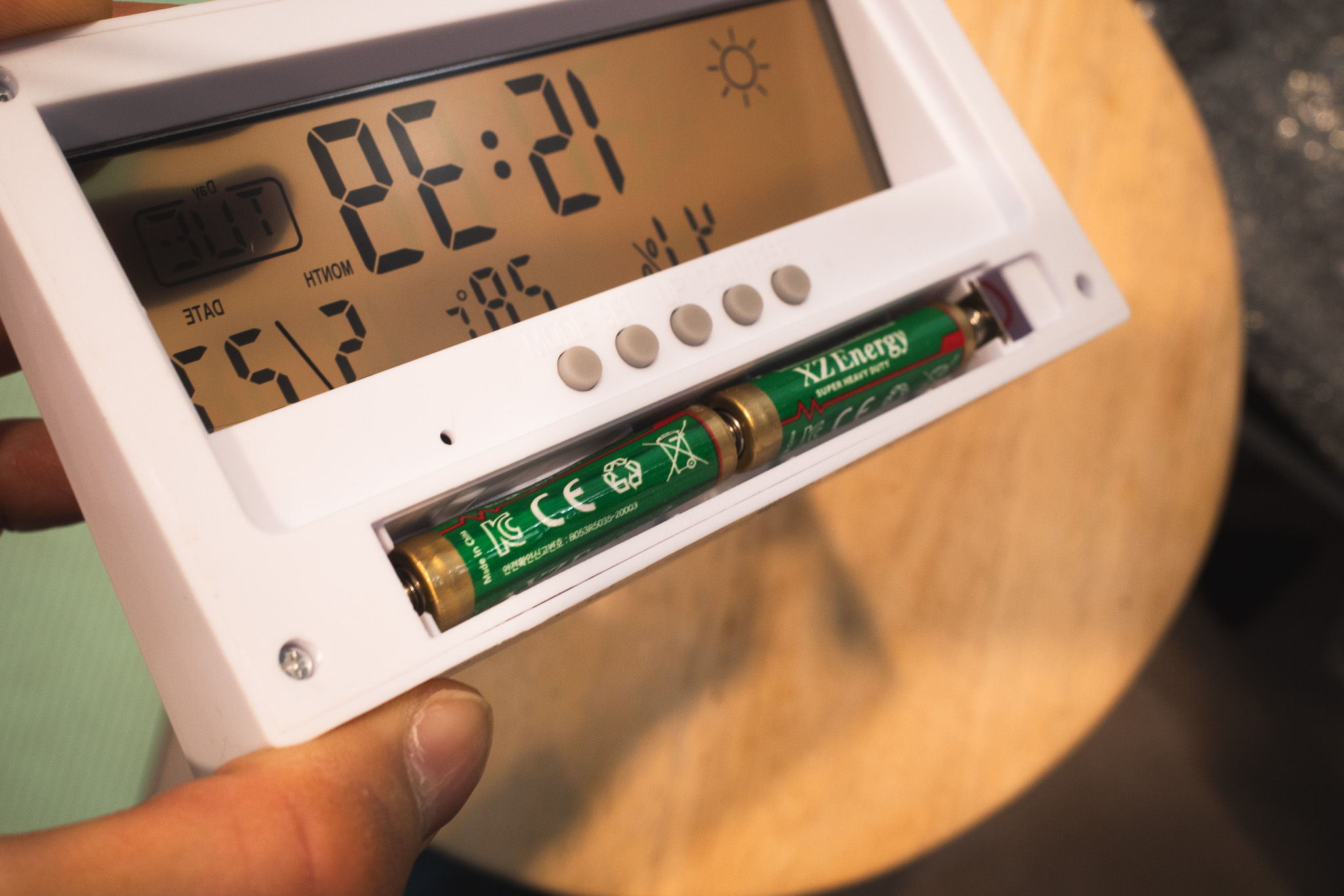 뒤에 있는 버튼 몇 개로 시간, 날짜, 알람, 단위까지 다 설정할 수 있었다.