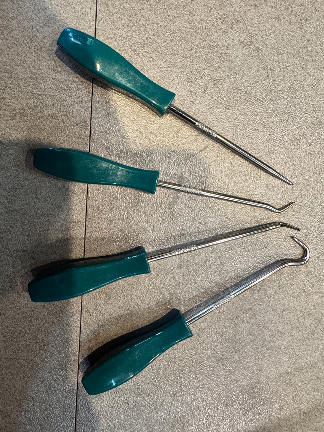 오일씰 안쪽에 얇은 후크툴을 비스듬히 삽입하고 내부에 걸린 링을 조심스럽게 뽑아냅니다. 강성이 높진 않지만 충분히 단단하고, 손잡이도 미끄럽지 않아 조작감은 꽤 꽨찮았습니다. 단, 힘을 많이 줘야 하는 작업에는 약간 휘는 느낌이 있어 무리한 토크는 피하는 것이 좋습니다.