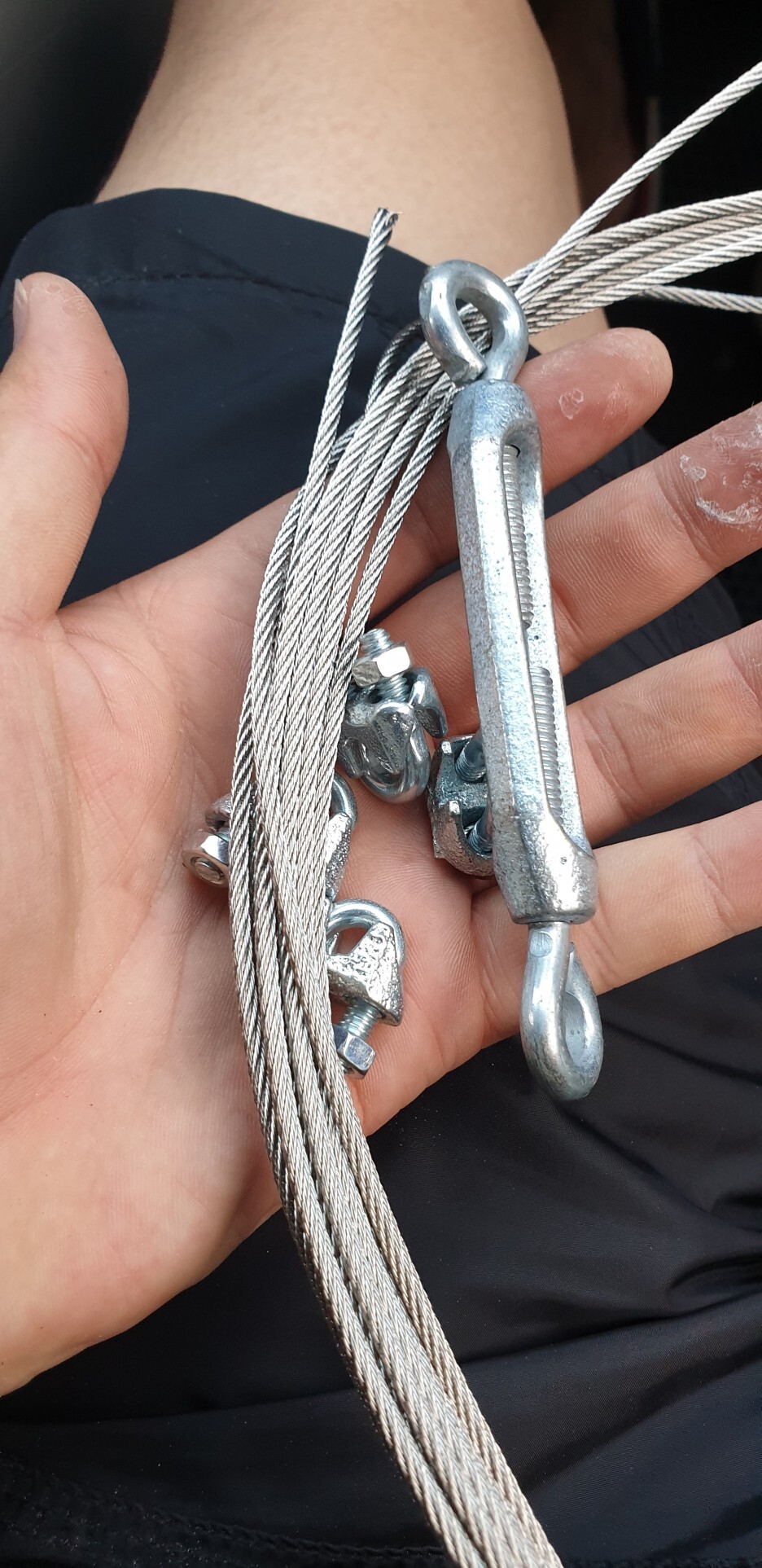 와이어는 기존에 사용하고 남은 것을 이용했고 와이어를 고정하는 부품은 철물점에서 3,300원에 구입 ㅎㅎ