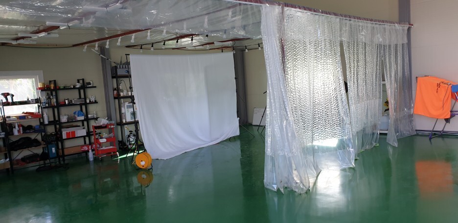 내 작업장의 길이는 10M이다 중간에 기둥을 세워 약 5M씩 공간을 나눠 놓았다.