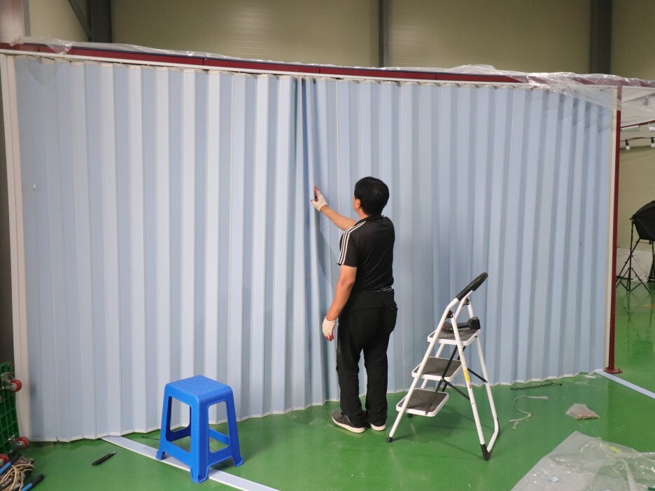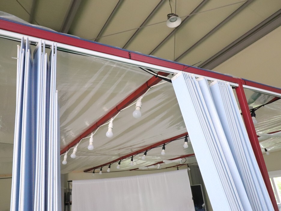 최소 비용으로 설치를 위해 가정집에서 쓰는 샤워커튼을 달아놨다.