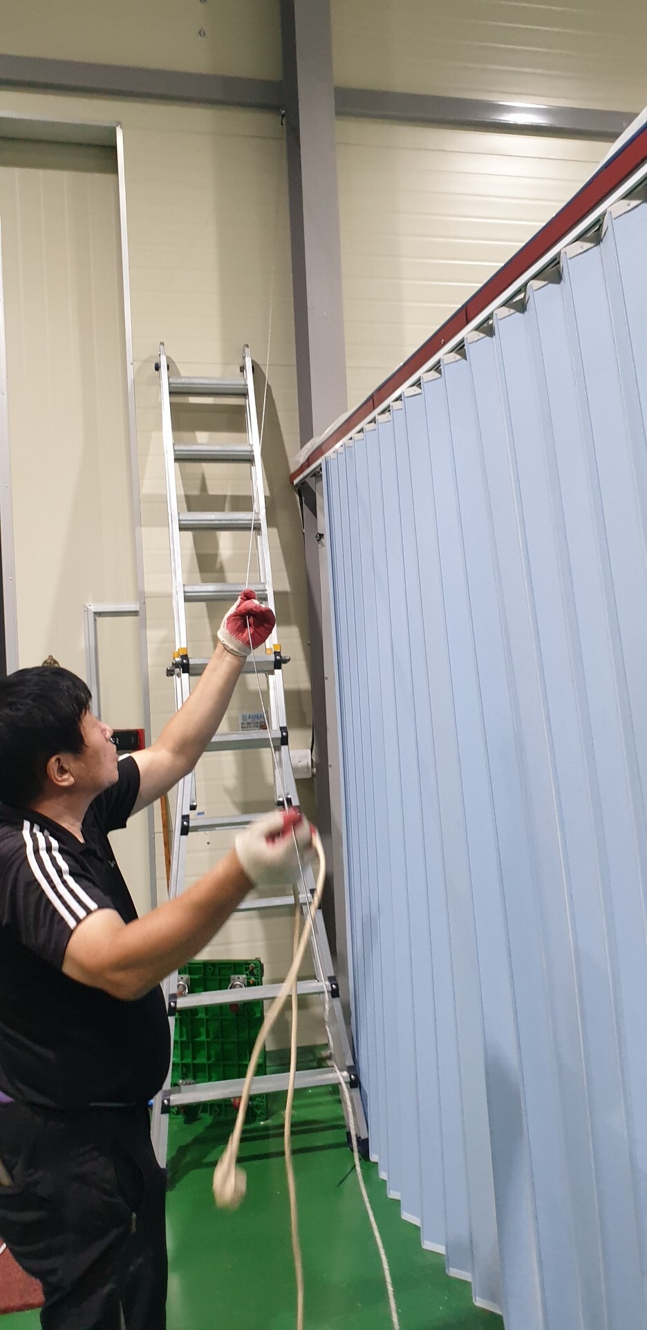 그것이 아니라도 각바가 얇아 폴딩 도어의 무게를 온전히 지탱을 못함으로 가운데 부분이 조금 쳐지는 현상이 있었고