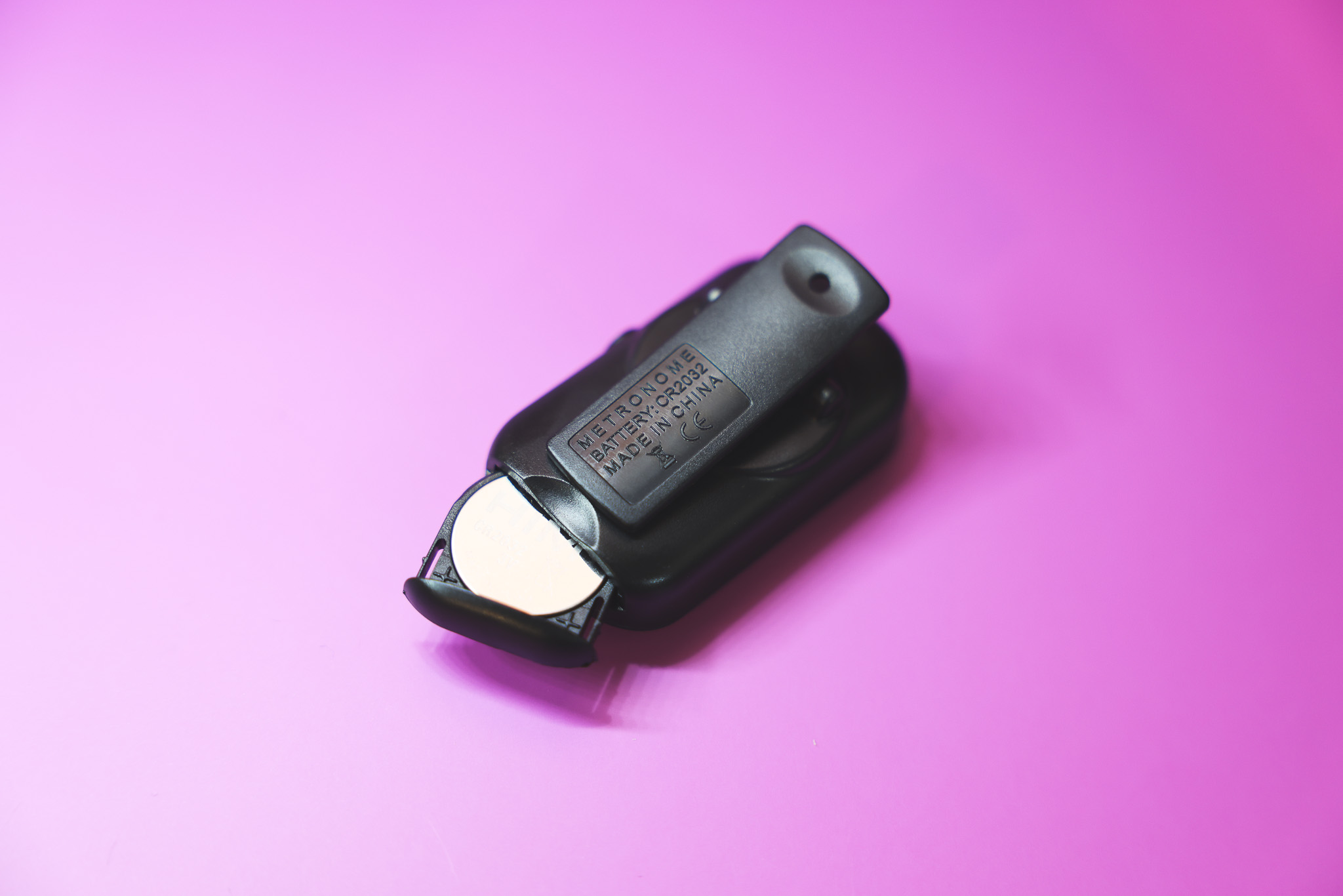 ✔️ 건전지 방식: → CR2032 코인형 리튬 배터리 1개 사용 → AAA가 아닌 원형 건전지라 본체가 슬림하고 가벼움 디자인도 미니멀해서 연습용품 사이에 둬도 전혀 부담스럽지 않습니다.