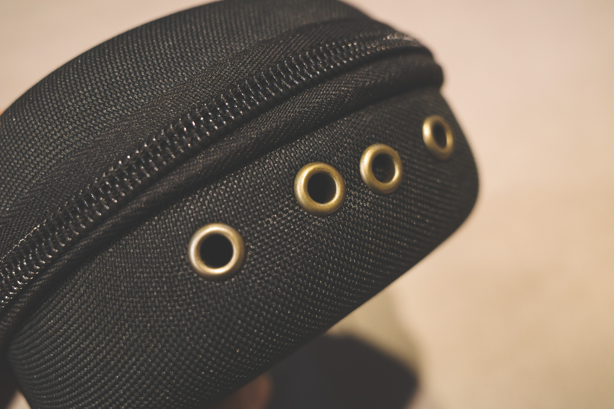케이스 외부는 미니멀한 블랙 컬러로 제작되어 세련된 느낌을 주면서, 어느 장비와도 잘 어울립니다. 표면은 방수 처리된 소재를 사용해 빗물이나 습기에도 쉽게 젖지 않고, 내부에는 통풍을 위한 에어홀(vent hole)이 있어 장시간 보관 시에도 곰팡이나 습기 차는 문제를 최소화합니다. 또한 지퍼는 견고하고 부드럽게 열리고 닫혀, 사용 중 걸림 없이 편리하게 쓸 수 있습니다.