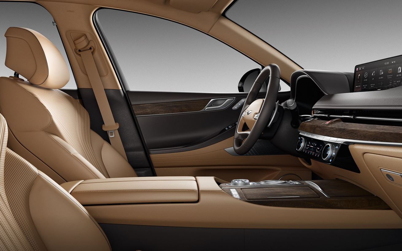 프라임 나파 가죽 시트(퀼팅,파이핑적용),프라임 나파 가죽 내장제(센터콘솔 암레스트,스티어링 휠 혼커버),오픈포어 리얼우드 내장재,