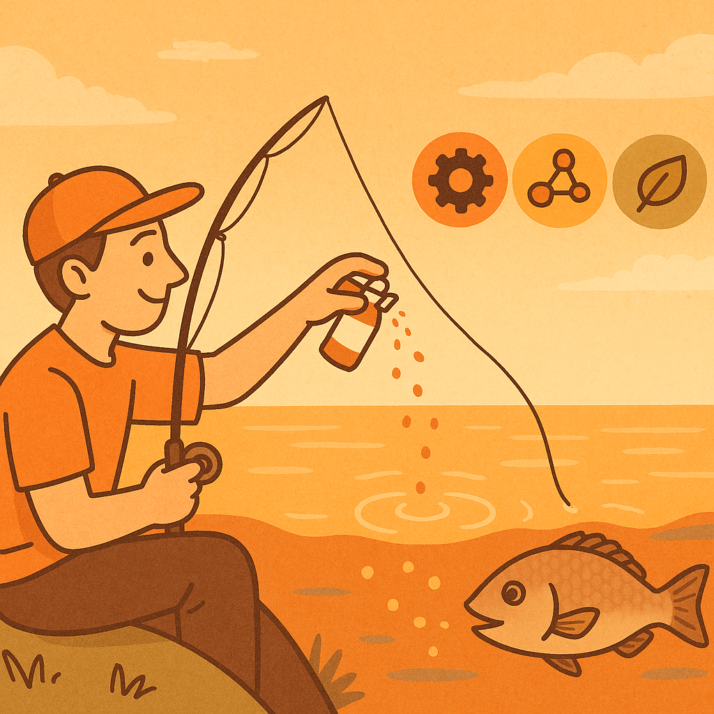 집어제가 단순히 '냄새'만으로 물고기를 부르는 것은 아닙니다. 대부분의 제품에는 생선에서 추출한 아미노산, 트라이메틸아민옥사이드(TMAO), 그리고 일부는 피쉬페로몬(Fish Pheromone)이라 불리는 유인 화합물이 포함되어 있습니다.